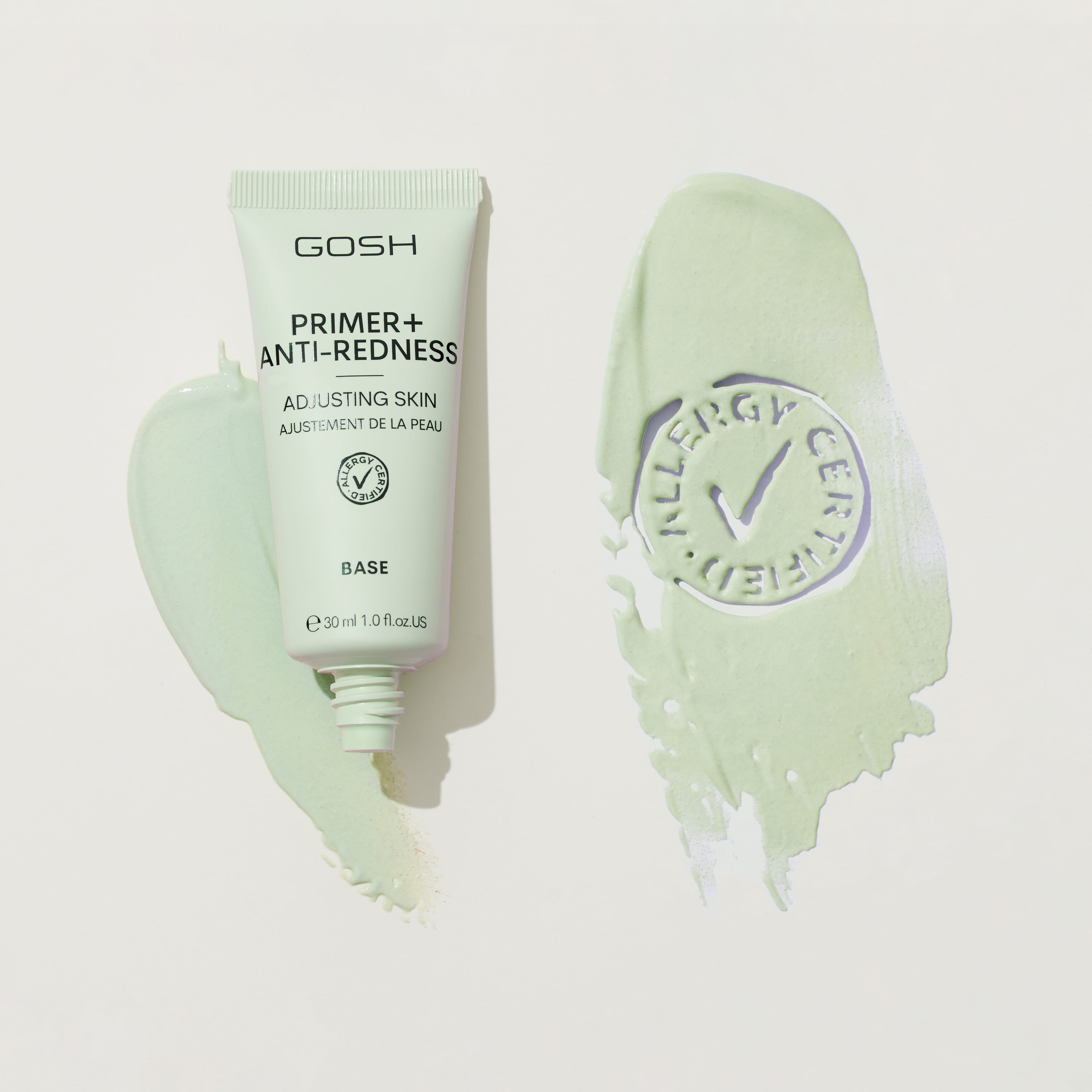 PRIMER + ANTI-REDNESS felur roða og lagar sig að hvaða húðliti sem er. Grunnurinn er samsettur með litaðlagandi litarefnum sem vinna gegn hvers kyns roða og gera roðann minna áberandi.