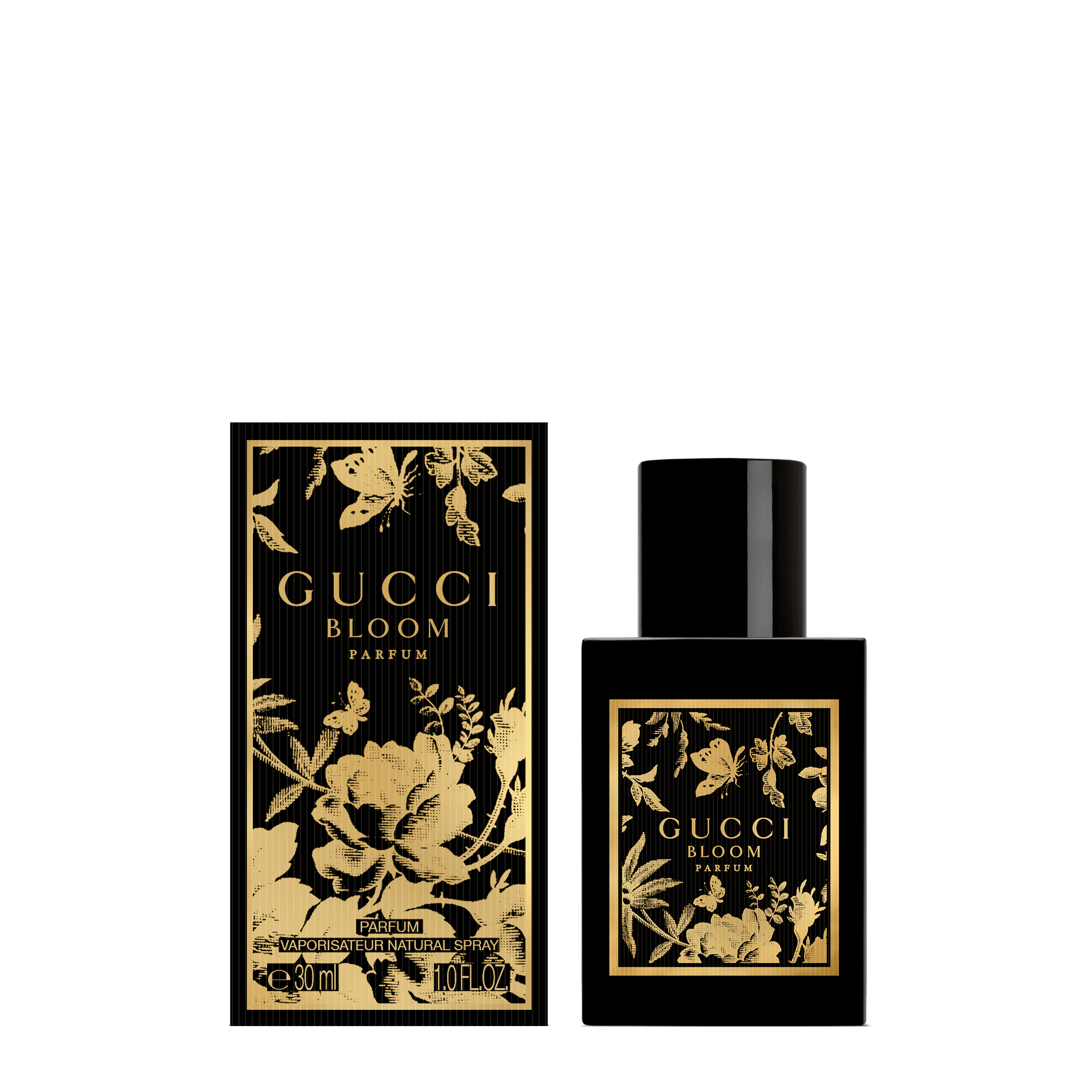 Ilmhönnuður Gucci Bloom Parfum færir Bloom-línunni ávanabindandi, sólrauðan blómailm, en hann umbreytti hinu táknræna hvíta Bloom-samspili. Einstök áferð þessa kraftmikla ilms liggur í nýjum amberkenndum undirtónum knúnum áfram af Perú-balsamþykkni. Flaskan er djörf í djúpum miðnætursvörtum lit, með House-mynstri sem táknar fágun ilmsins og endurspeglar styrk hans.
