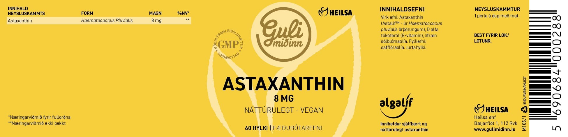Astaxanthin er talið eitt öflugasta andoxunarefni sem finnst í náttúrunni. Sex þúsund sinnum sterkari andoxunaráhrif en C vítamín.