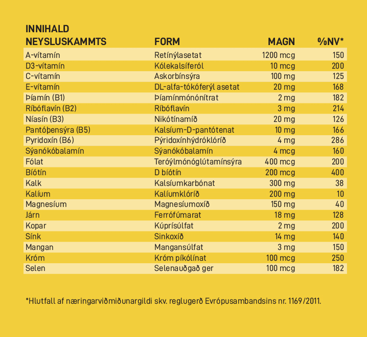 Sérvalin fjölvítamínblanda fyrir þarfir Íslendinga og inniheldur mikilvæg vítamín og steinefni.