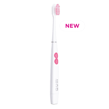 GUM Activital Sonic Sensitive batterístannbursinn - burstar 88% meira af óhreinndum milli tannanna og hreinsar 121% dýpra undir tannholdið. Sensitive burstinn er notaður eins og venjulegur tannbursti þar sem auka krafturinn er nýttur fyrir djúpa en blíða hreinsun. Þægilegt handfang og hægt að skipta um hausinn og rafhlöður eftir þörfum.