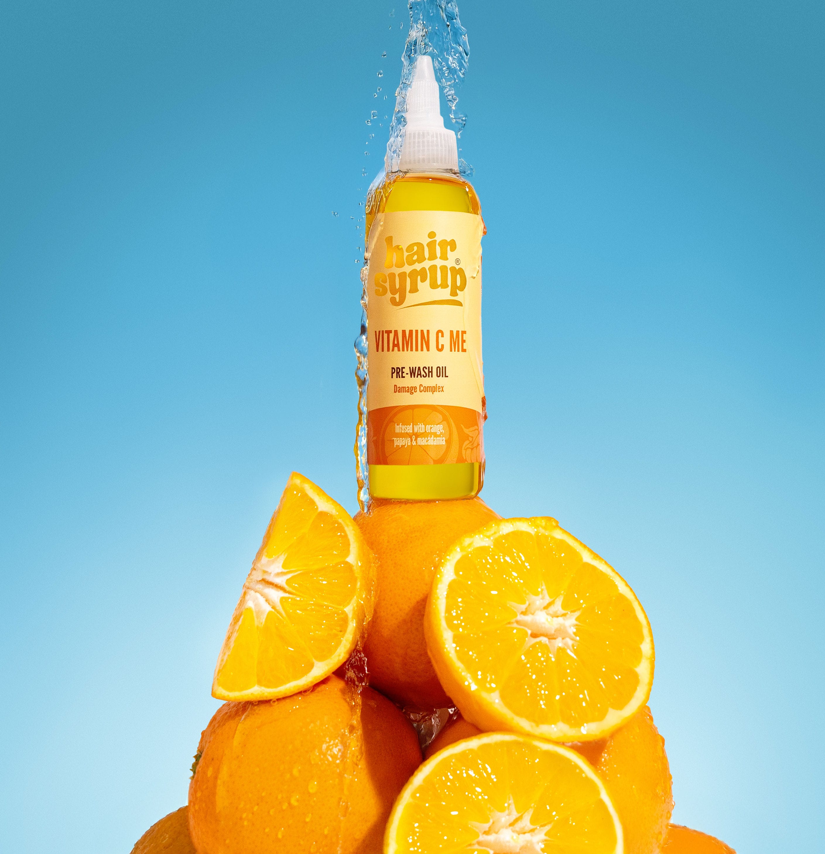 Skemmt, brothætt og líflaust hár? Gefðu hárinu nýtt líf með þessari öflugu, vítamínríku forþvottameðferð sem styrkir og verndar viðkvæmt hár. Sírópið okkar inniheldur sæta appelsínuolíu, macadamia og papaya – fullu af C-vítamíni til að styrkja, veita raka og draga úr framtíðarskemmdum. Fullkomið fyrir þurrt og slitið hár.