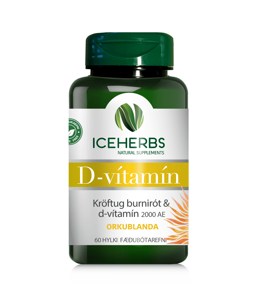 ORKUBLANDA MEÐ D-VÍTAMÍNI OG ÍSLENSKRI BURNIRÓT FYRIR ALMENNA HEILSU OG BETRI ANDLEGA OG LÍKAMLEGA LÍÐAN