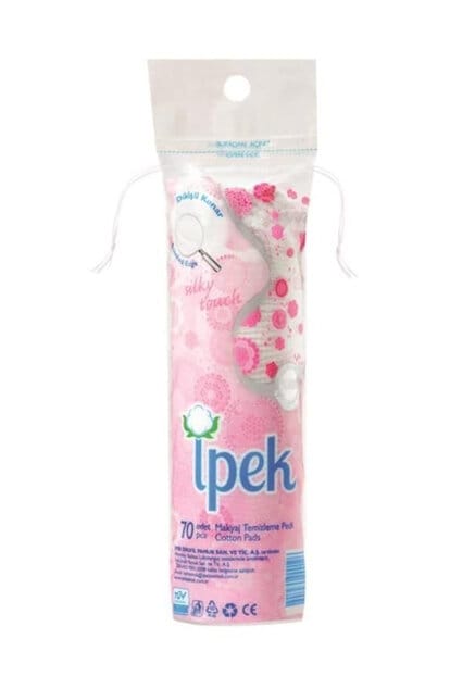 100% hreinar bómullarskífur. 70 stk af mjúkum skífum, með saumuðum kanti.