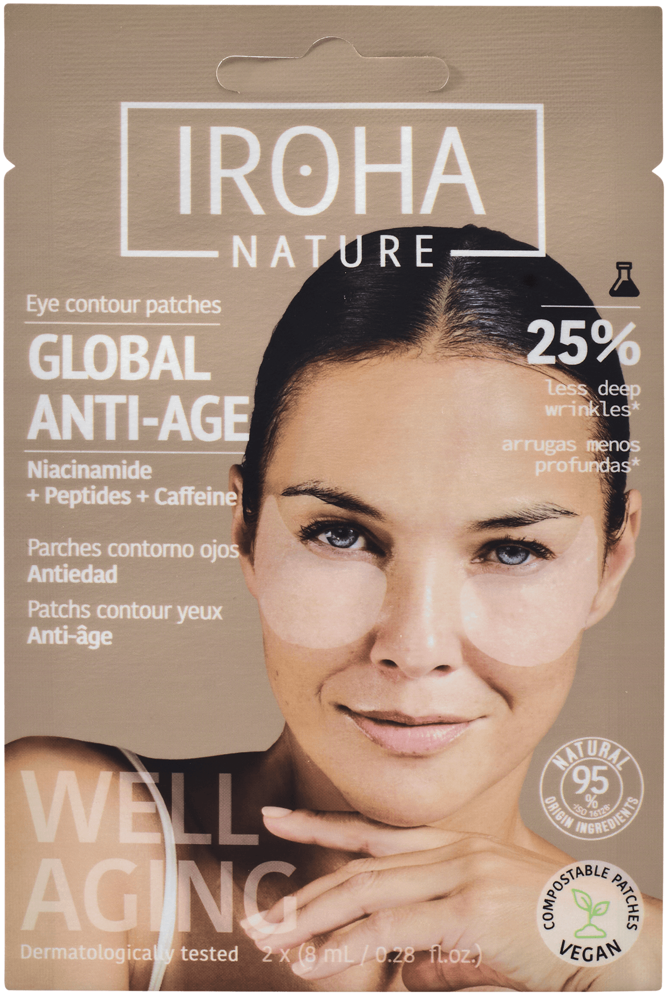 Iroha augnpúðarnir Global Eye Care draga úr þrota, dökkum baugum og fínum línum á augnsvæðinu. Einstök samsetning efna sem innihalda m.a. níasínamíð, peptíð og koffein. Augnpúðarnir gefa líka góðan raka og augnsvæðið verður unglegra og bjartara.
