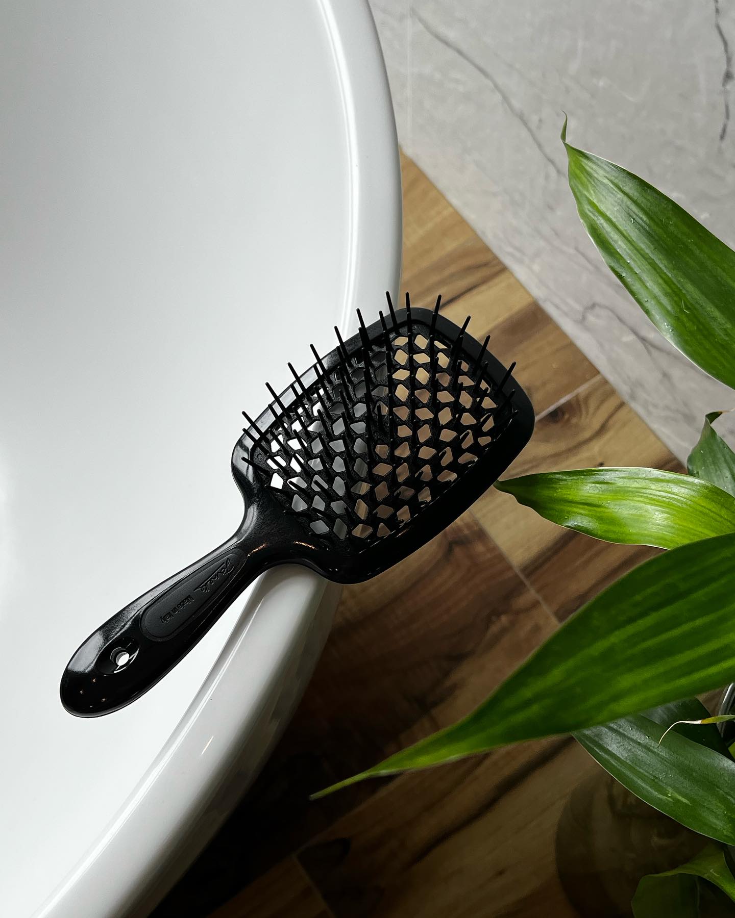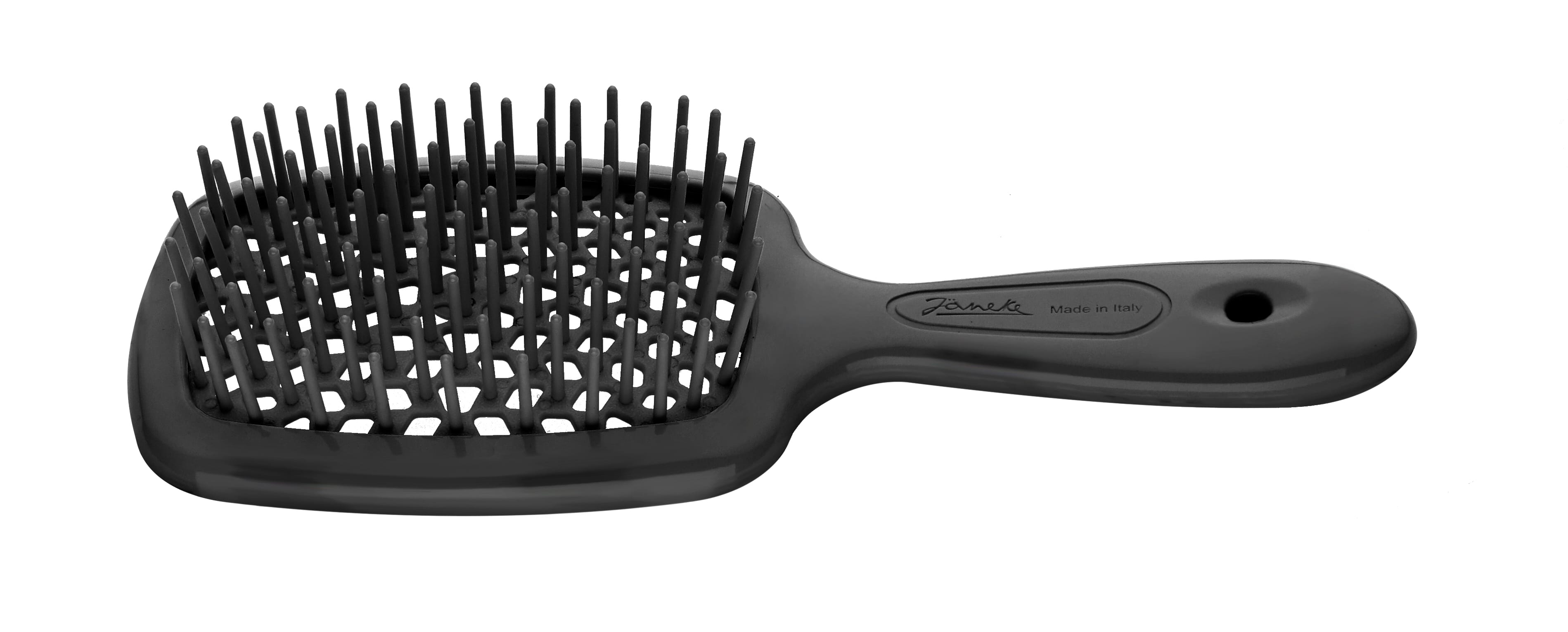 Superbrush hárburstinn greiðir vandlega í gegnum hárið. Þökk sé hönnun burstans og mjúkum pinnum. Burstinn rennur vel í gegnum hárið, hvort sem það er þurrt eða rakt. Einnig virkar hann vel í hárframlengingar. Götin á milli pinnana sjá til þess að heitt loft frá hárblásara dreifist jafnt um hárið. Það má nota burstann í sturtu. Þrífið burstann með vatni. Vörumerkið Jäneke hefur framleitt hágæða vörur allt frá 1839