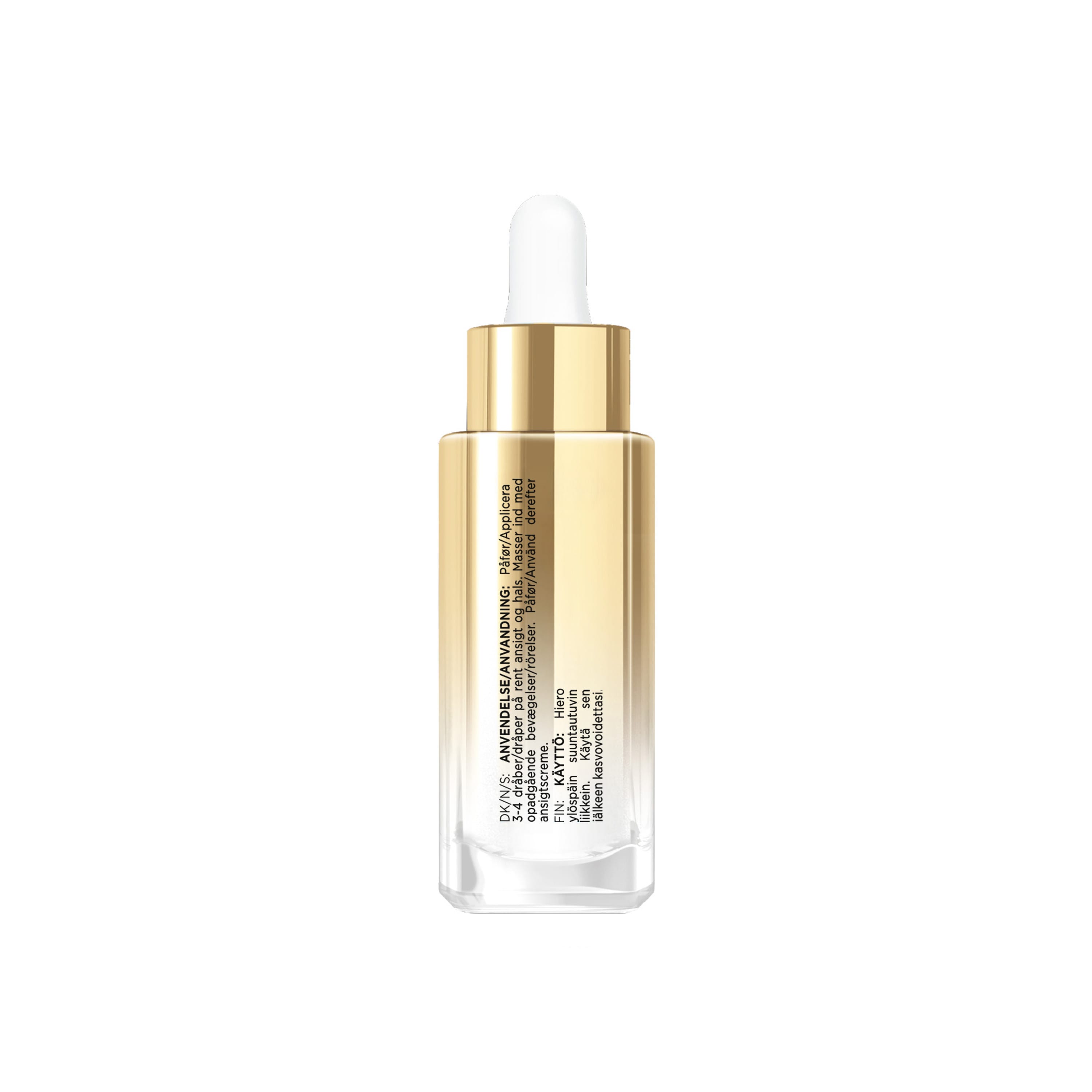 Berið 3–4 dropa af formúlunni á hreint andlit og háls. Nuddið varlega inn í húðina. Fylgið eftir með andlitskremi.