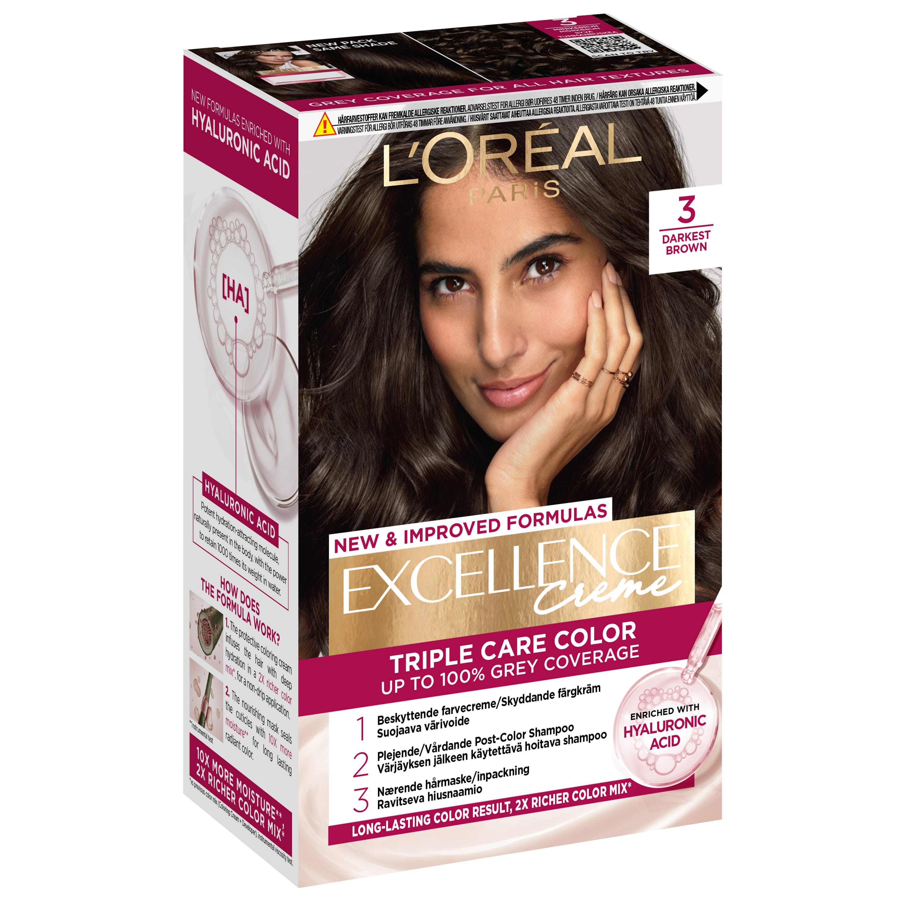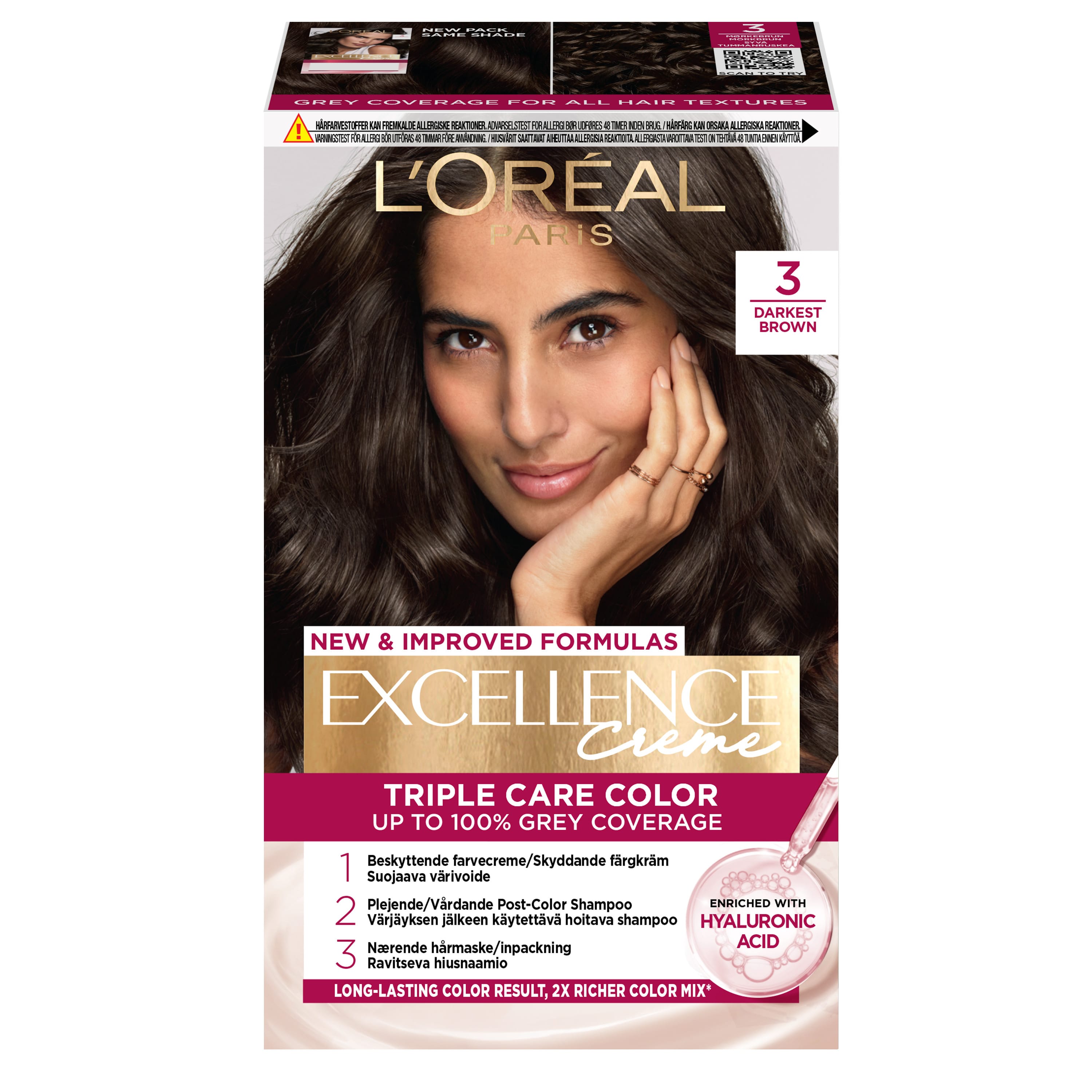 Excellence er fastur hárlitur sem hylur 100% grá hár um leið og hann styrkir og verndar hárið þitt.