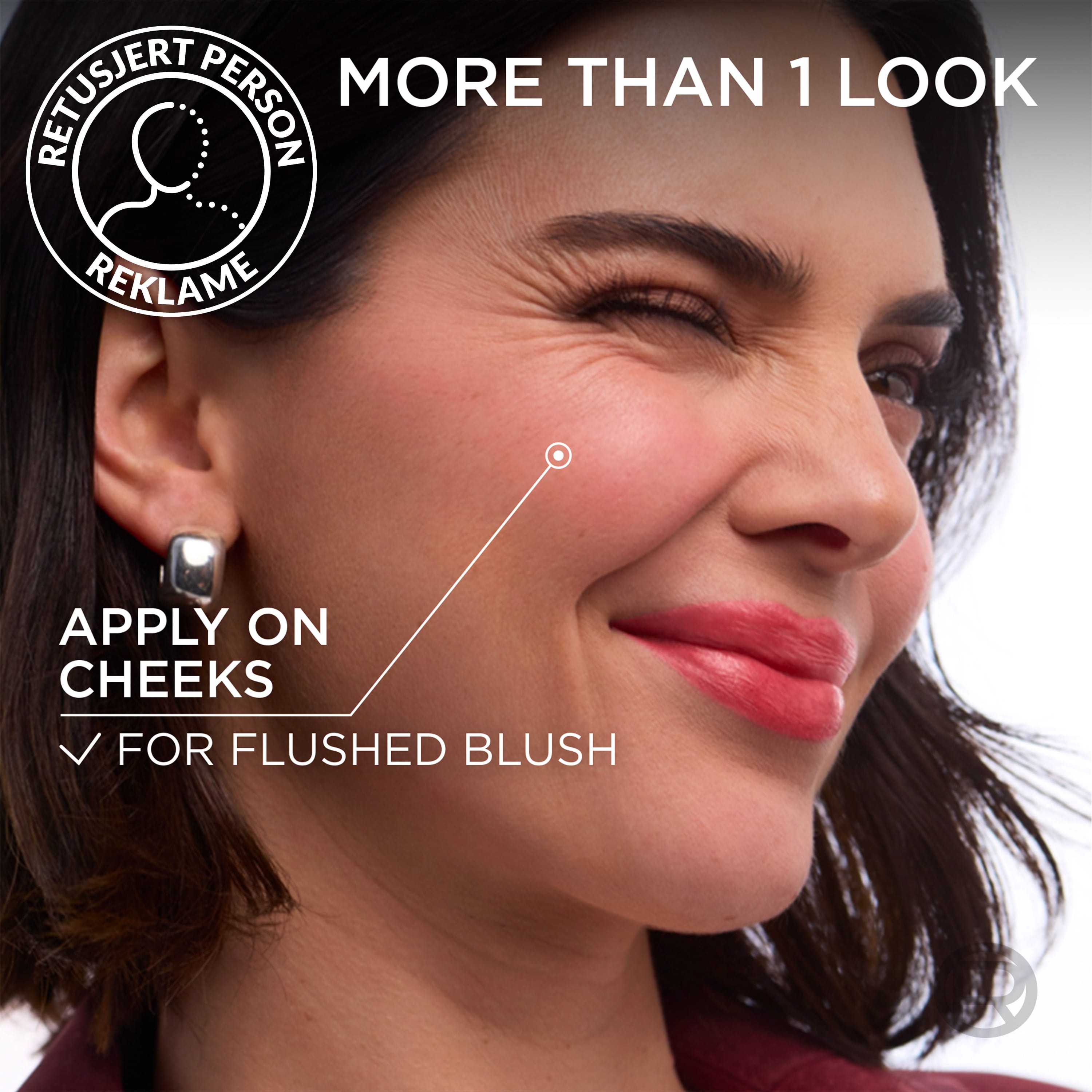 Berðu glossið á varirnar sem þornar í mjúkan, mattan lit. Klappaðu létt á kinnar fyrir náttúrulegan og fallegan kinnalit.