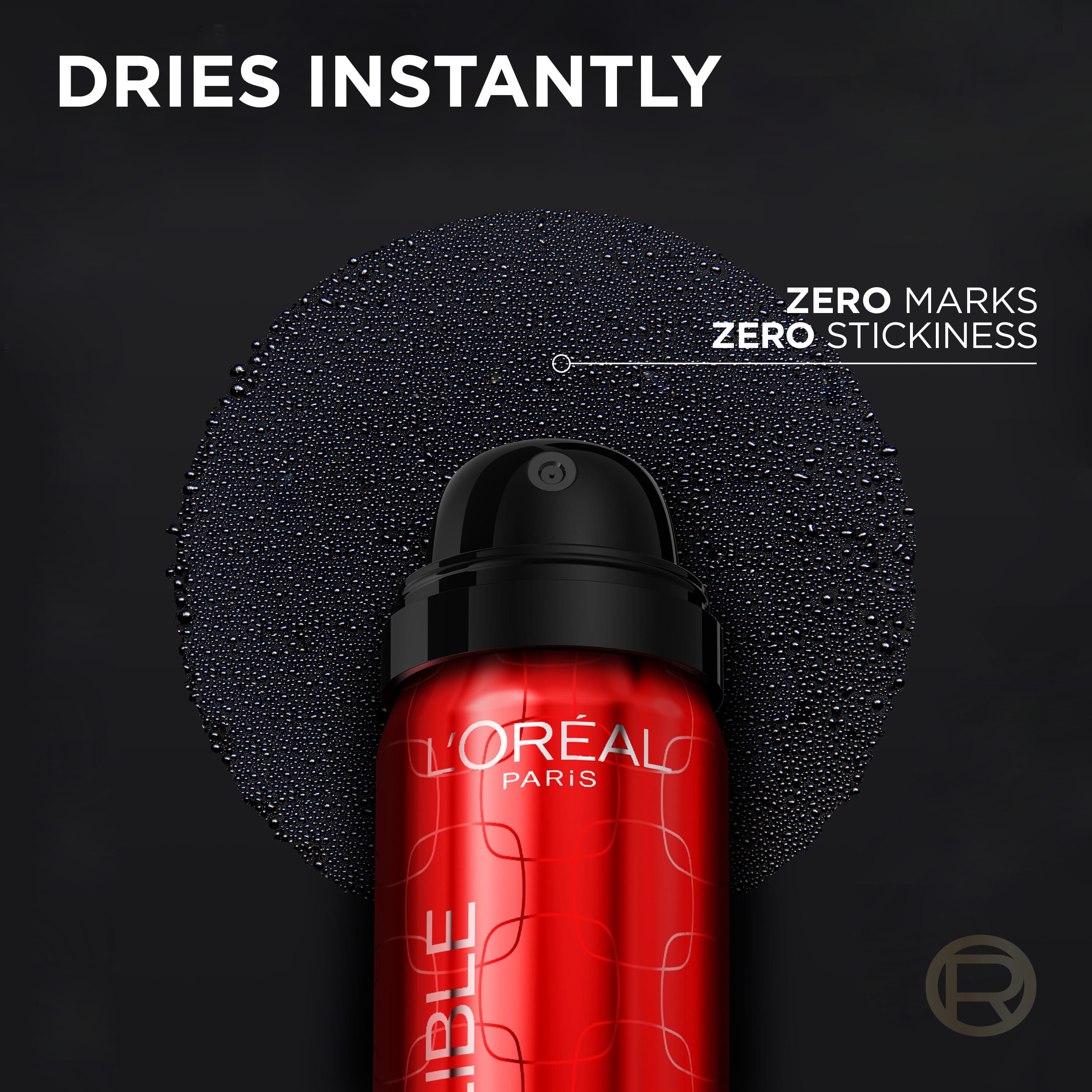 L'Oréal Paris Infaillible 3-Second Setting Mist gefur frá sér úða svo að farðinn þinn haldist í allt að 36 klst. Formúlan gerir förðunina vatns- og svithelda auk þess sem förðunin fer ekki af þegar efni eins og t.d. hálskraginn nuddast í andlitið. Úðinn er örfínn svo að hann er ekki þungur á andlitinu, ekki klístraður og skemmir ekki farðann með stórum dropum.