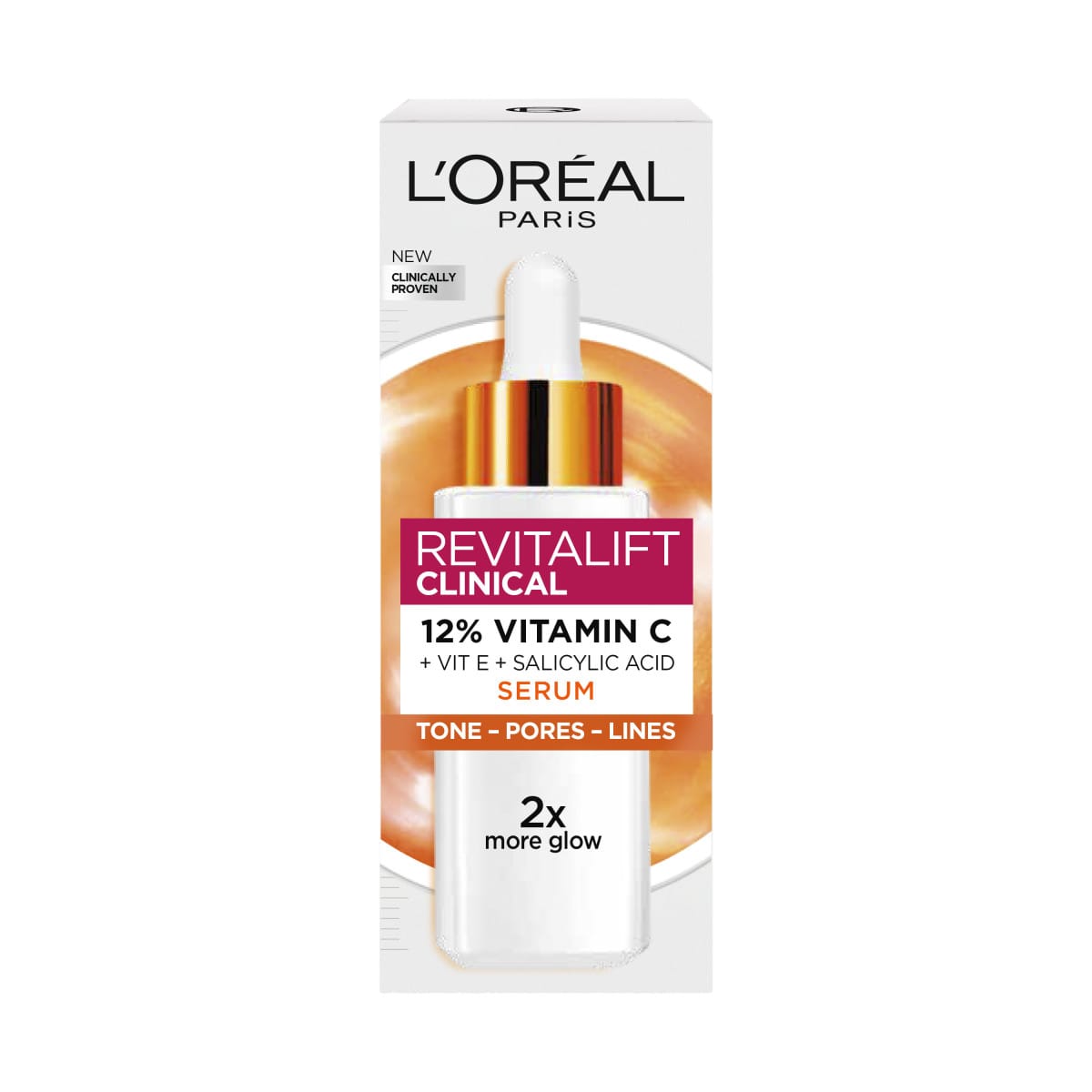"Revitalift Cliniqal Serumið frá L'Oréal Paris inniheldur 12% af hreinu C+E vítamíni og Salicylic sýru. Formúlan vinnur fljótt á 3 lykilatriðum öldrunar - litatón húðar, áferð húðar og fínum línum."