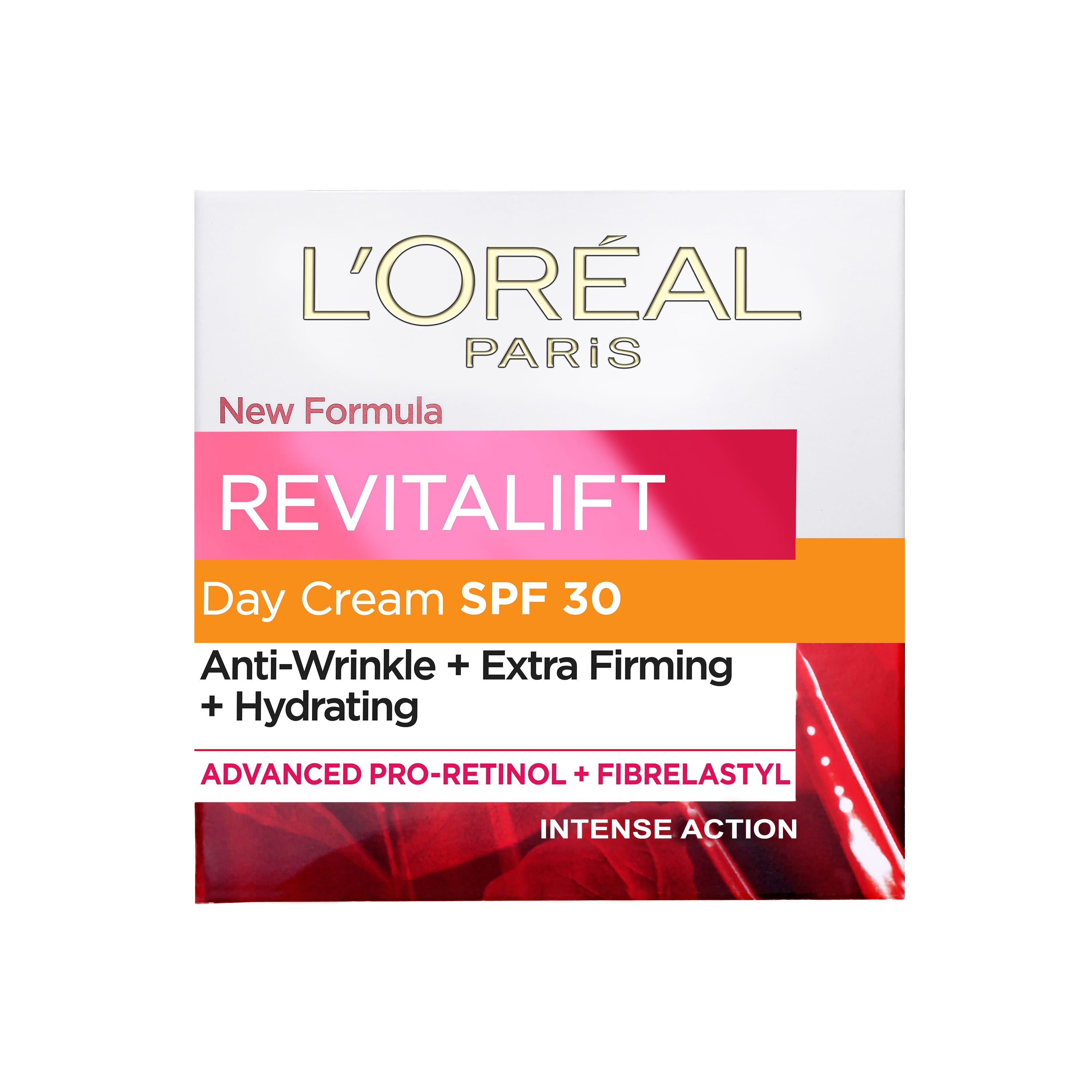 Revitalift dagkrem með SPF 30. Revitalift dagkremið styrkir húðina, eykur teygjanleika hennar og gefur henni raka. Revitalift húðvörurnar taka á fyrstu einkennum öldrunar í húðinni. Kremið inniheldur SPF30 og gefur því húðinni breiða vörn gegn skaðsemi sólar. Formúlan inniheldur Pro-Retinol sem hjálpar til við að slétta úr áferð húðarinnar.