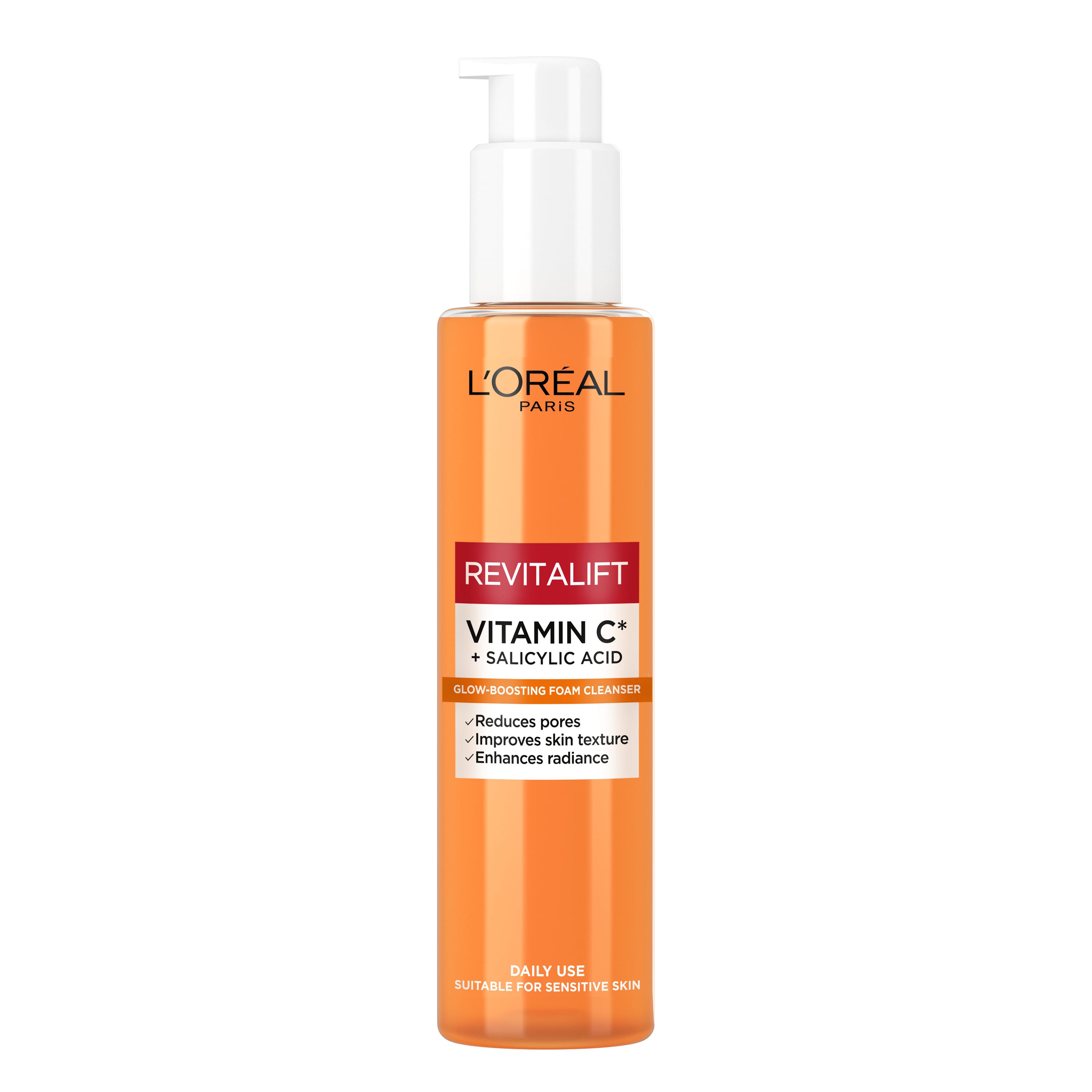 L'Oréal Paris Revitalift Vitamin C* hreinsifroðan veitir freyðandi og milda hreinsun á húðinni á sama tíma og hún gefur ljóma og fínpússar áferð húðarinnar. Formúlan er auðguð með C-vítamíni* og Salisýlsýru. Hreinsifroðan skilur húðina eftir mjúka, slétta og ferska. C-vítamín*: bætir ljóma, fínpússar áferð húðarinnar og dregur úr sýnileika svitahola. Salisýlsýra: Fjarlægir dauðar húðfrumur ásamt húðfitu og gerir húðina sléttari