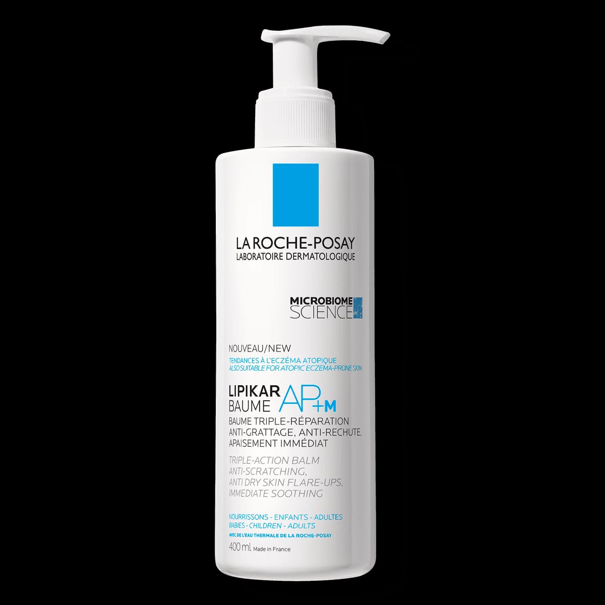 Lipikar AP+M er krem fyrir andlit og líkama sem róar húðina og dregur úr kláða og óþægindum af völdum þurrks í húðinni. Kremið hentar fyrir húð sem hættir við að fá exem eða aðra sambærilega húðsjúkdóma. Kremið inniheldur góðgerla sem leggja áherslu á að styrkja ysta lag húðarinnar og varnir hennar. Kremið má nota á ungabörn, það er án allra ertandi innihaldsefna.