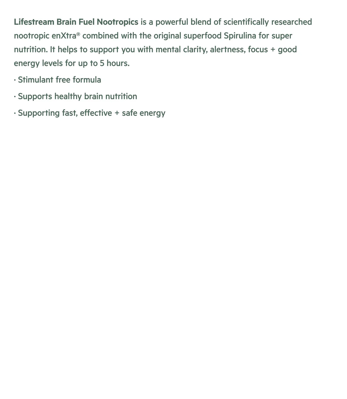 rósemd og vellíðan, jafnvel undir álagi- allt án allra koffíns fráhvarfa. Lifestream Brain Fuel Nootropics, eykur næringu til heilans, virkni og orku, í allt að 5 klukkustundir *af auknum skýrleika og fókus.