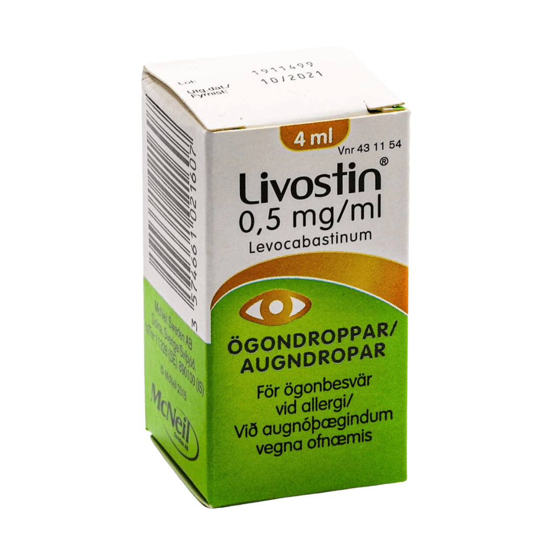 Livostin augndropar er andhistamín sem notað er við ofnæmisóþægindum eins og augnroða, þrota í augum, rennsli úr augum og augnkláða. Livostin augndropar eru notaðir við ofnæmi af völdum frjókorna eða annarra loftborinna ofnæmisvalda frá t.d. gæludýrum, ryki eða myglu/sveppagróum. Livostin vinnur gegn ofnæmi með því að hindra áhrif histamins. Það er histamin sem veldur roða, þrota, kláða og rennsli úr augum. Verkun Livostin hefst innan 15 mínútna
