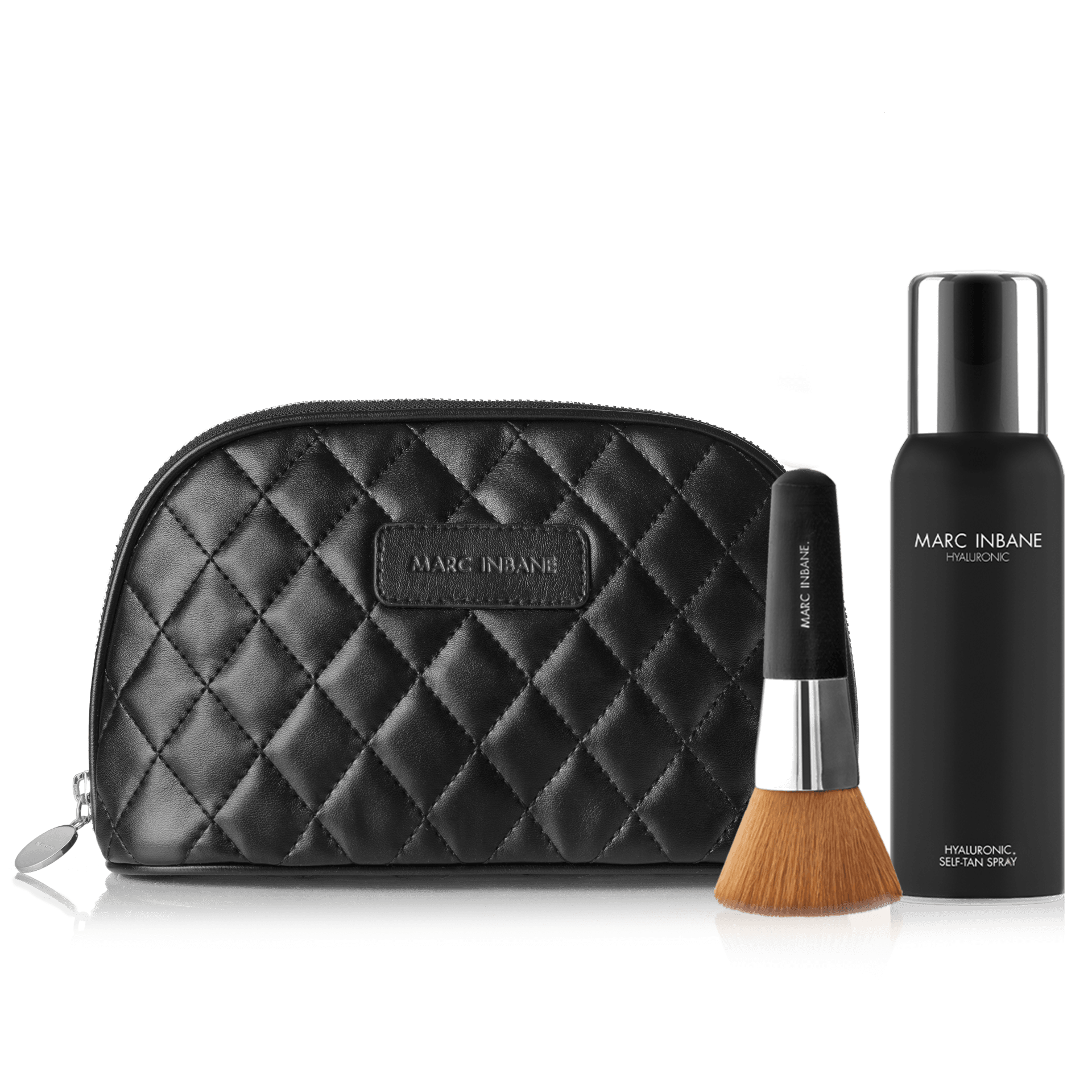 La Beauté settið kemur í fallegri snyrtitösku og inniheldur Hyaluronic brúnkusprey og Kabuki farðabursta.