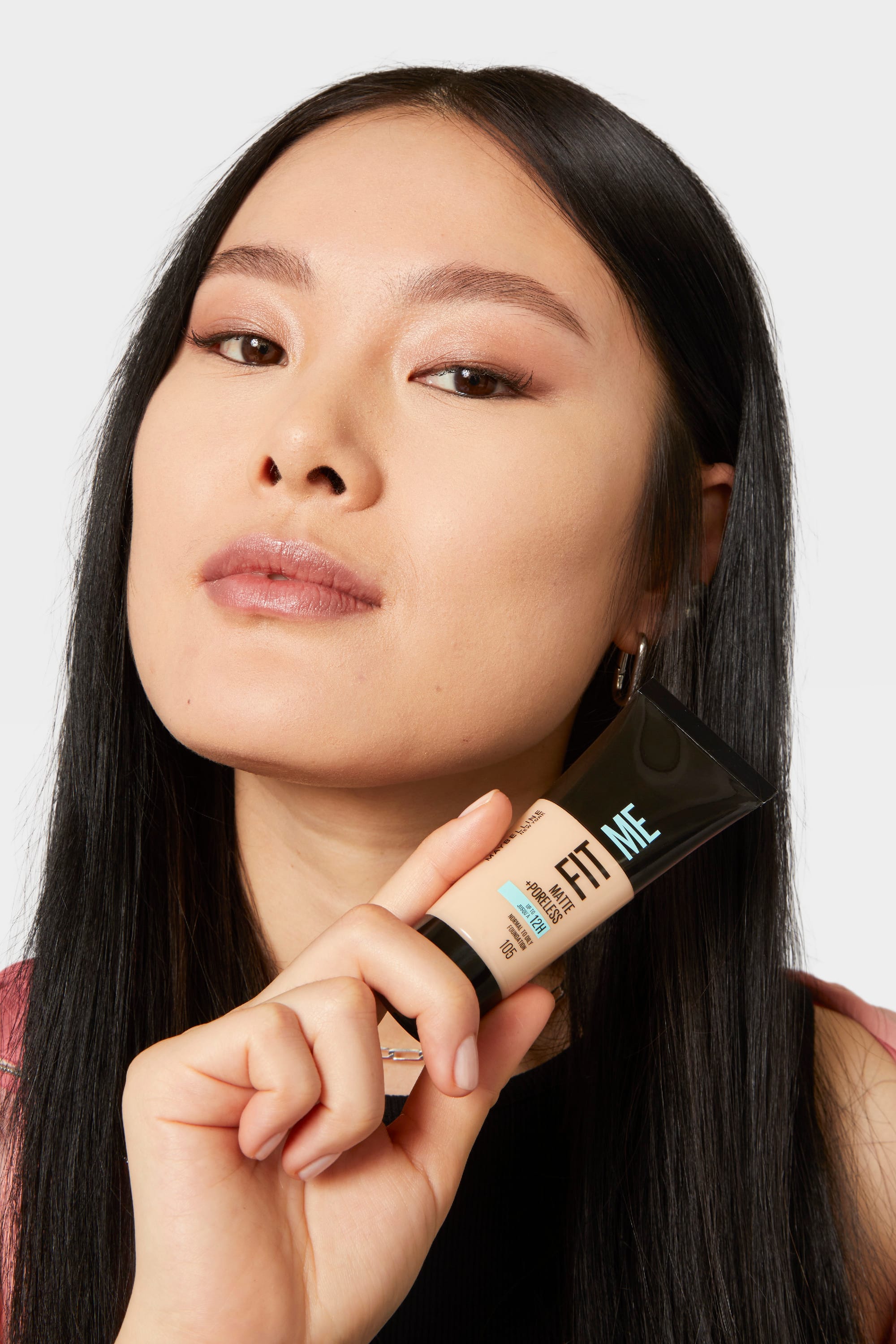Maybelline Fit Me Matte + Poreless farðinn er sérstaklega hannaður fyrir venjulega, olíumikla húð. Formúlan jafnar áferð húðarinnar og gerir hana sléttari og jafnari. Farðinn skilur eftir sig matta áferð og lýtalausa húð.