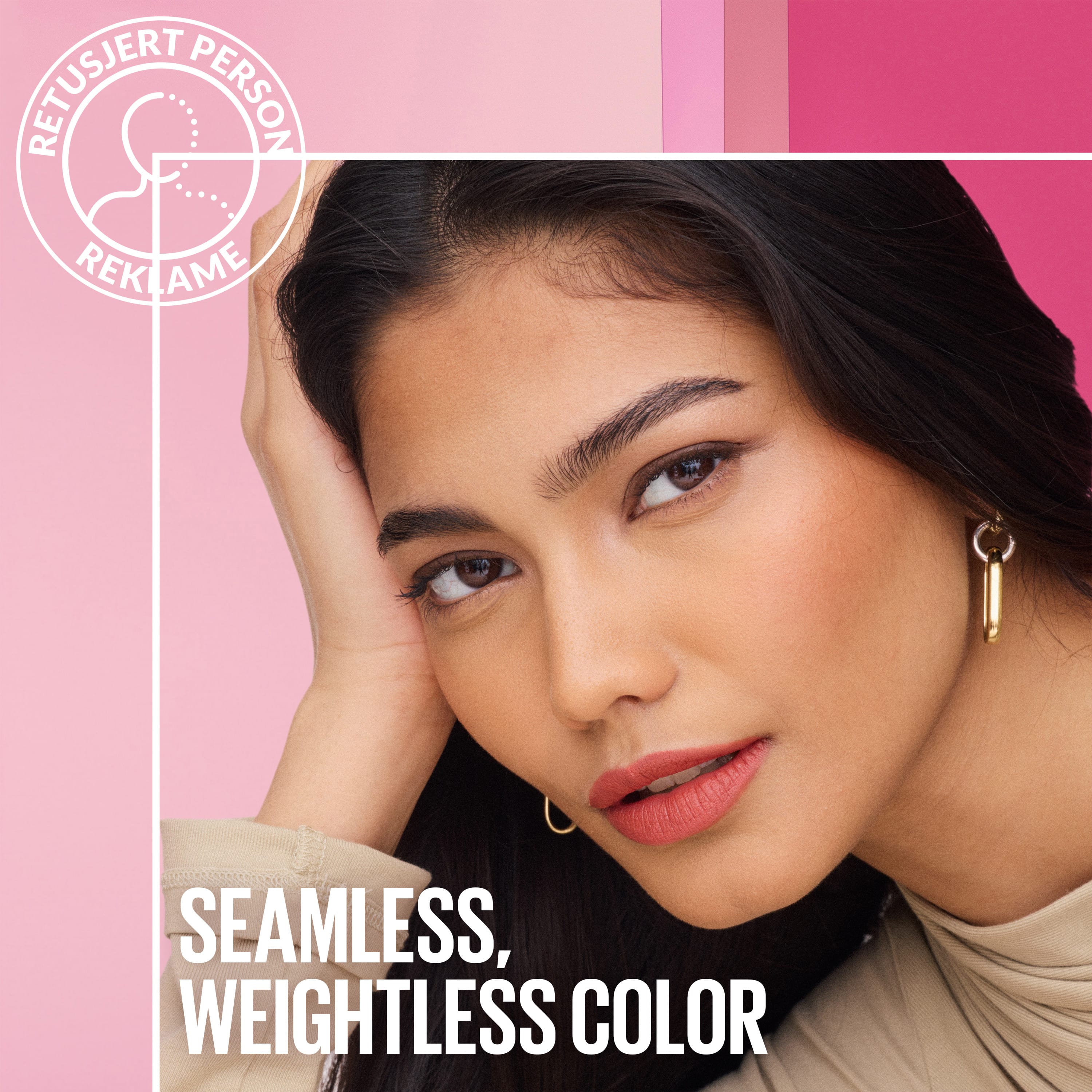 Maybelline New York Serum Lipstick er fallegur og rakagefandi varalitur. Varaliturinn inniheldur hýalúrónsýru og nærandi olíur sem veita vörunum raka í allt að 8 klst. Varaliturinn er léttur og þægilegur og áferðin er varla áþreifanleg á vörunum.