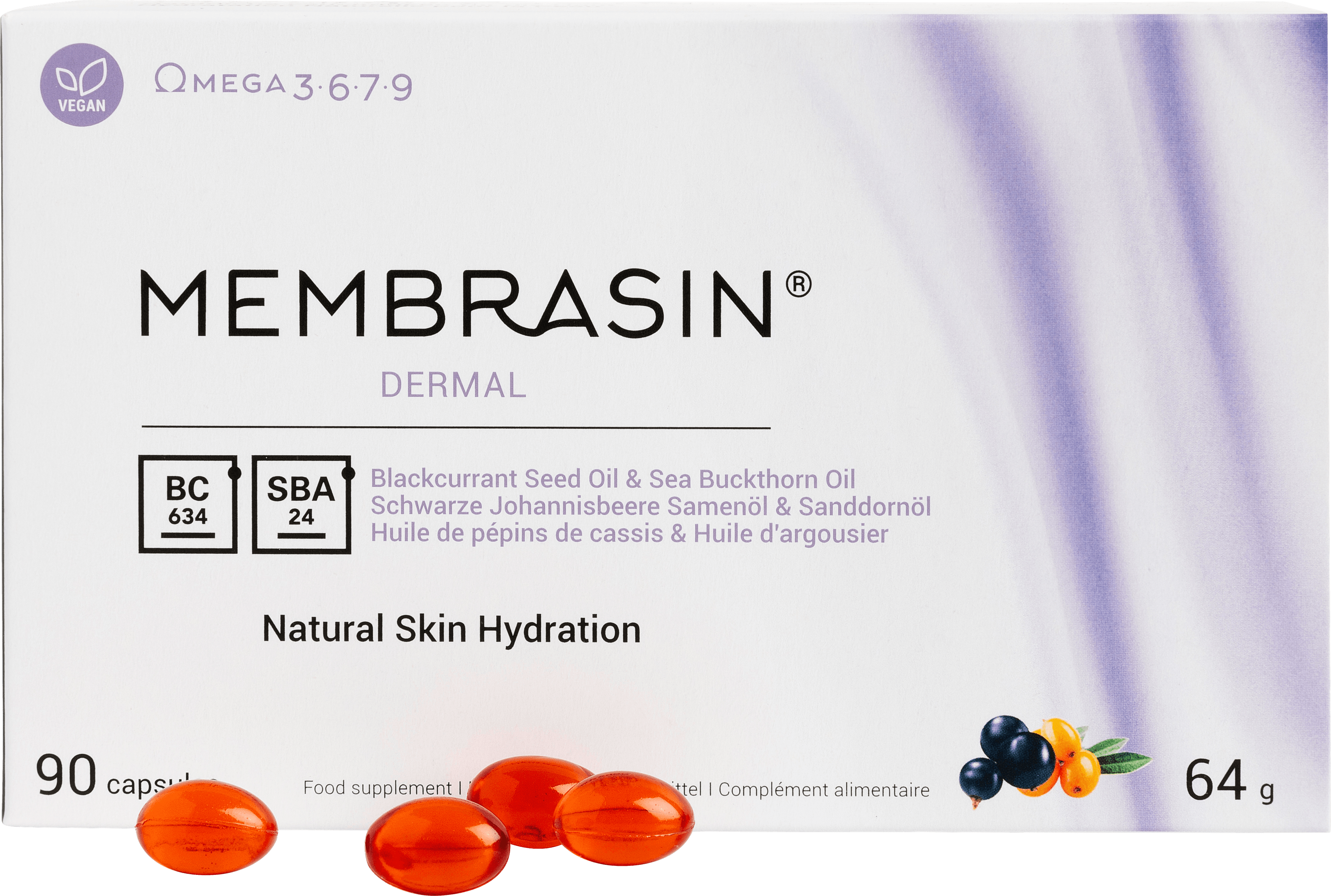 Bætiefnið inniheldur einstaka blöndu BC634®-sólberjafræjaolíu og SBA24®-hafþyrnisolíu. Báðar eru þær ríkar af lífsnauðsynlegum fitusýrum til að viðhalda heilbrigði húðarinnar. Sýnt hefur verið fram á öryggi og virkni BC634®-sólberjafræjaolíu og SBA24®-hafþyrnisBætiefnið inniheldur einstaka blöndu BC634®-sólberjafræjaolíu og SBA24®-hafþyrnisolíu. Báðar eru þær ríkar af lífsnauðsynlegum fitusýrum til að viðhalda heilbrigði húðarinnar. Sýnt hefur verið fram á öryggi og virkni BC634®-sólberjafræjaolíu og SBA24®-hafþyrnisolíu með vísindalegum rannsóknum. Bætiefnið inniheldur einnig A-vítamín úr náttúrulegu betakarótíni sem stuðlar að viðhaldi eðlilegrar húðar og slímhúðar og E-vítamín sem verndar húðina gegn oxunarskemmdum.