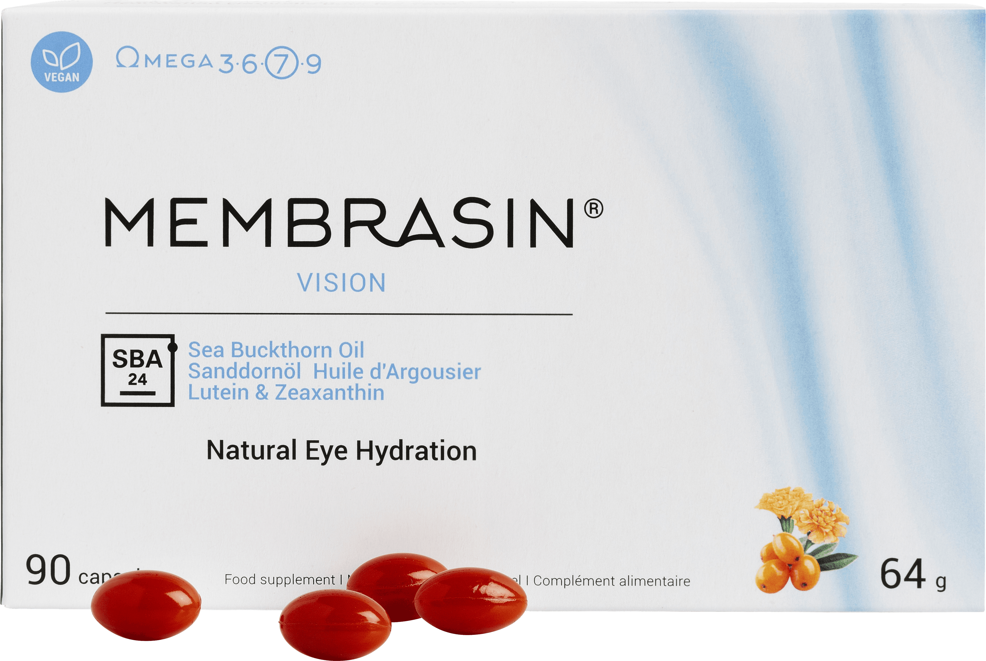 Membrasin Vision bætiefni 90 stk. Vision Vitality er bætiefni, hannað og framleitt í Finnlandi, sem er sérhannað til þess að vinna markvisst gegn augnþurrki. Einnig til að vernda viðkvæm augun gegn bláu ljósi sem stafar frá tölvum, snjalltækjum og farsímum.