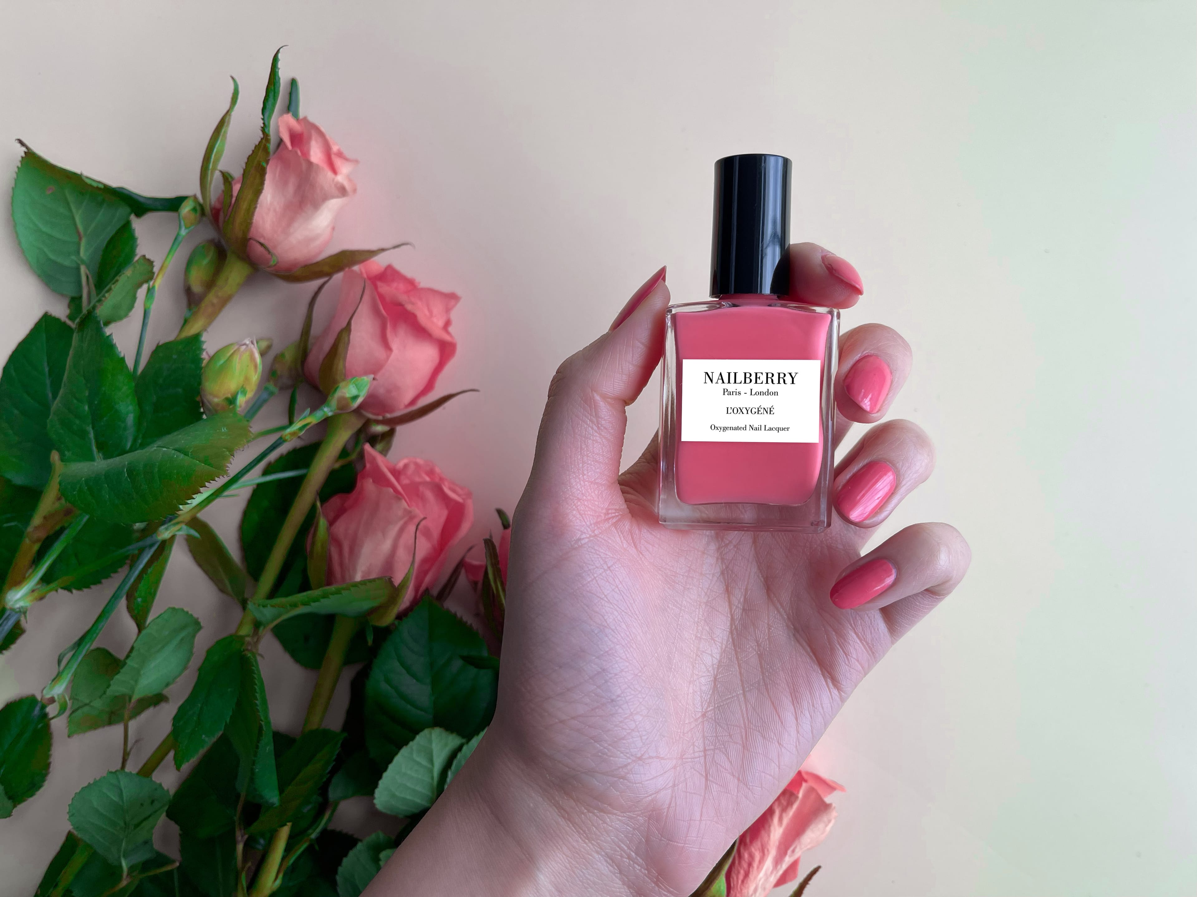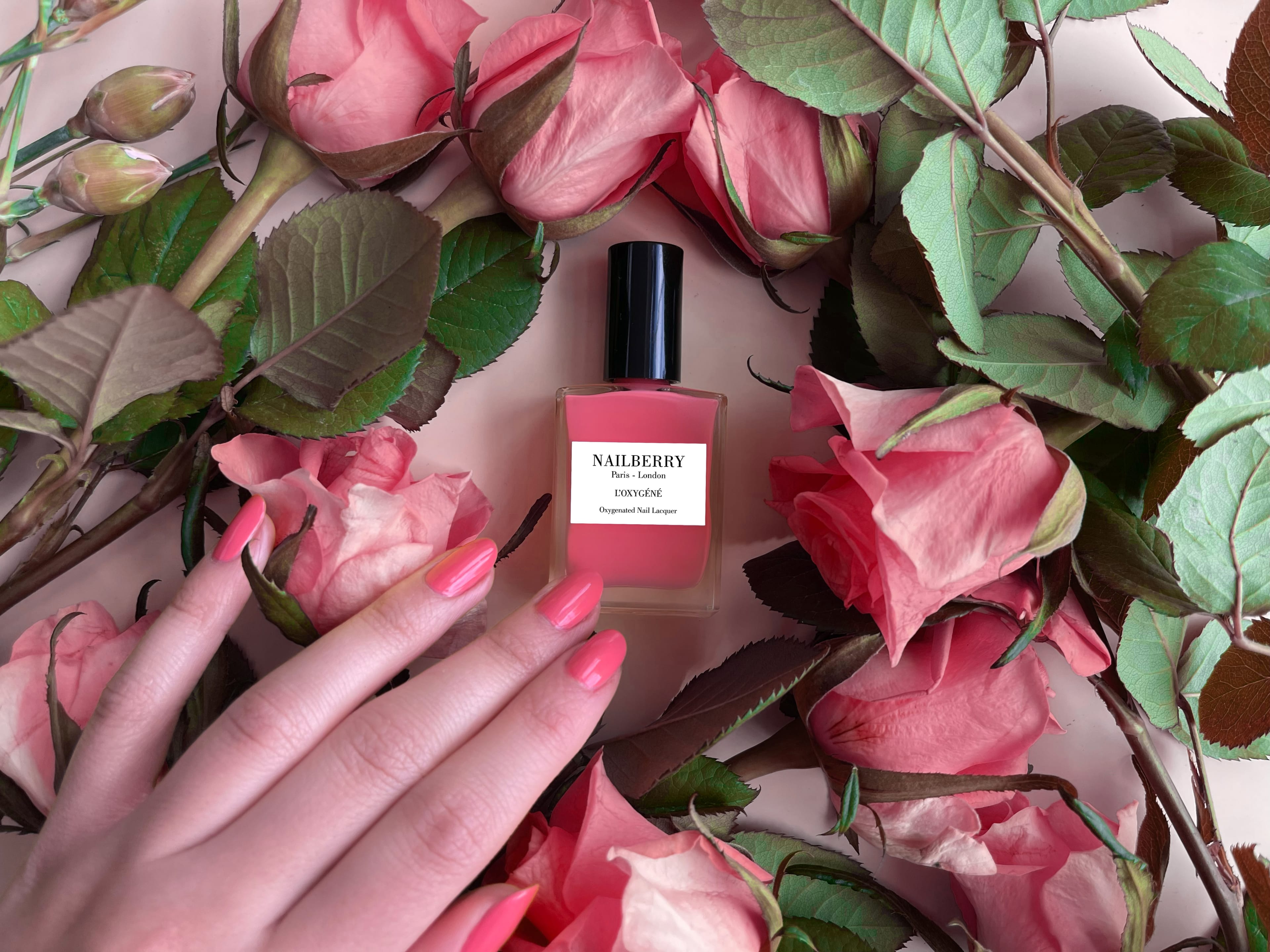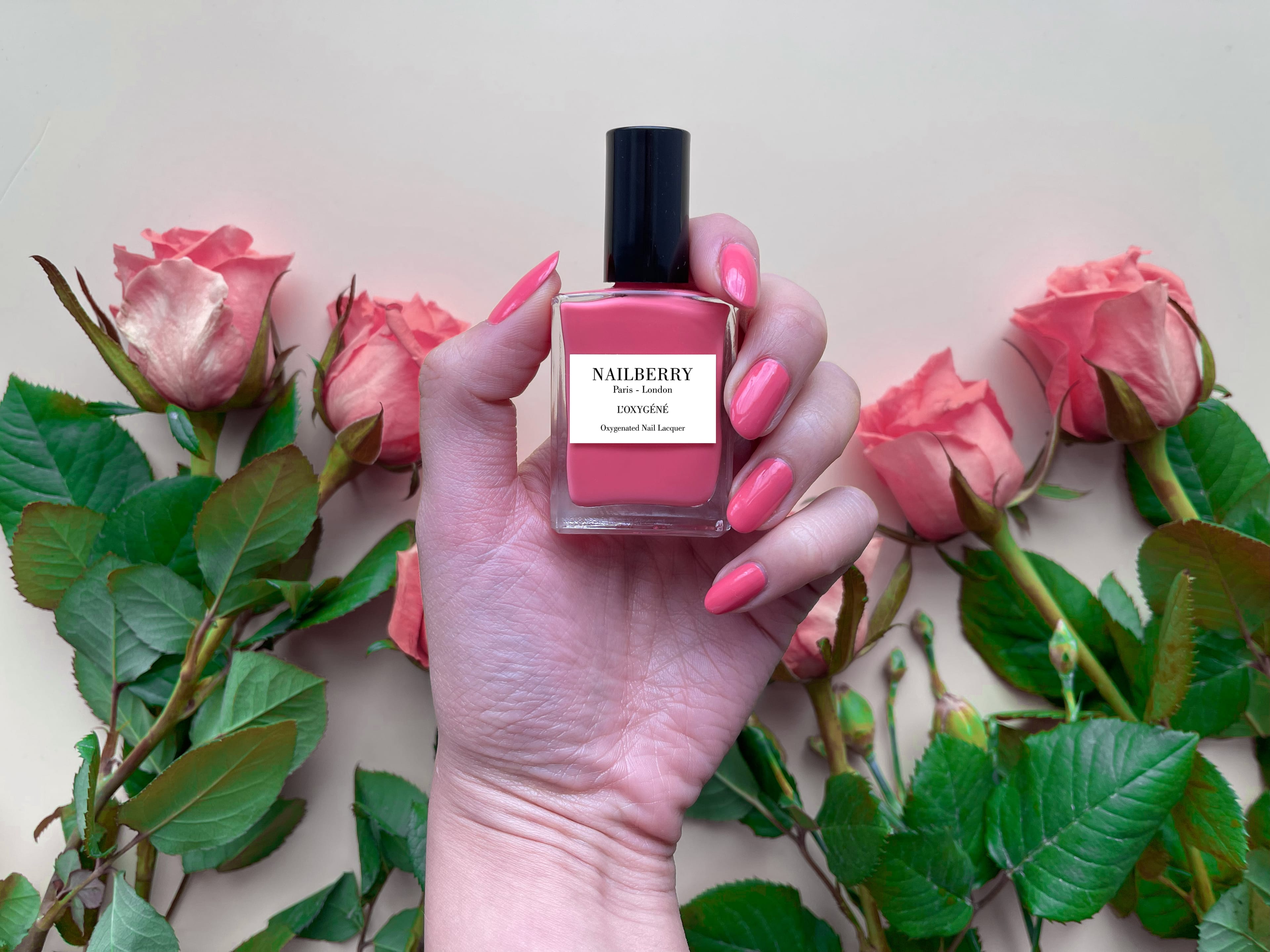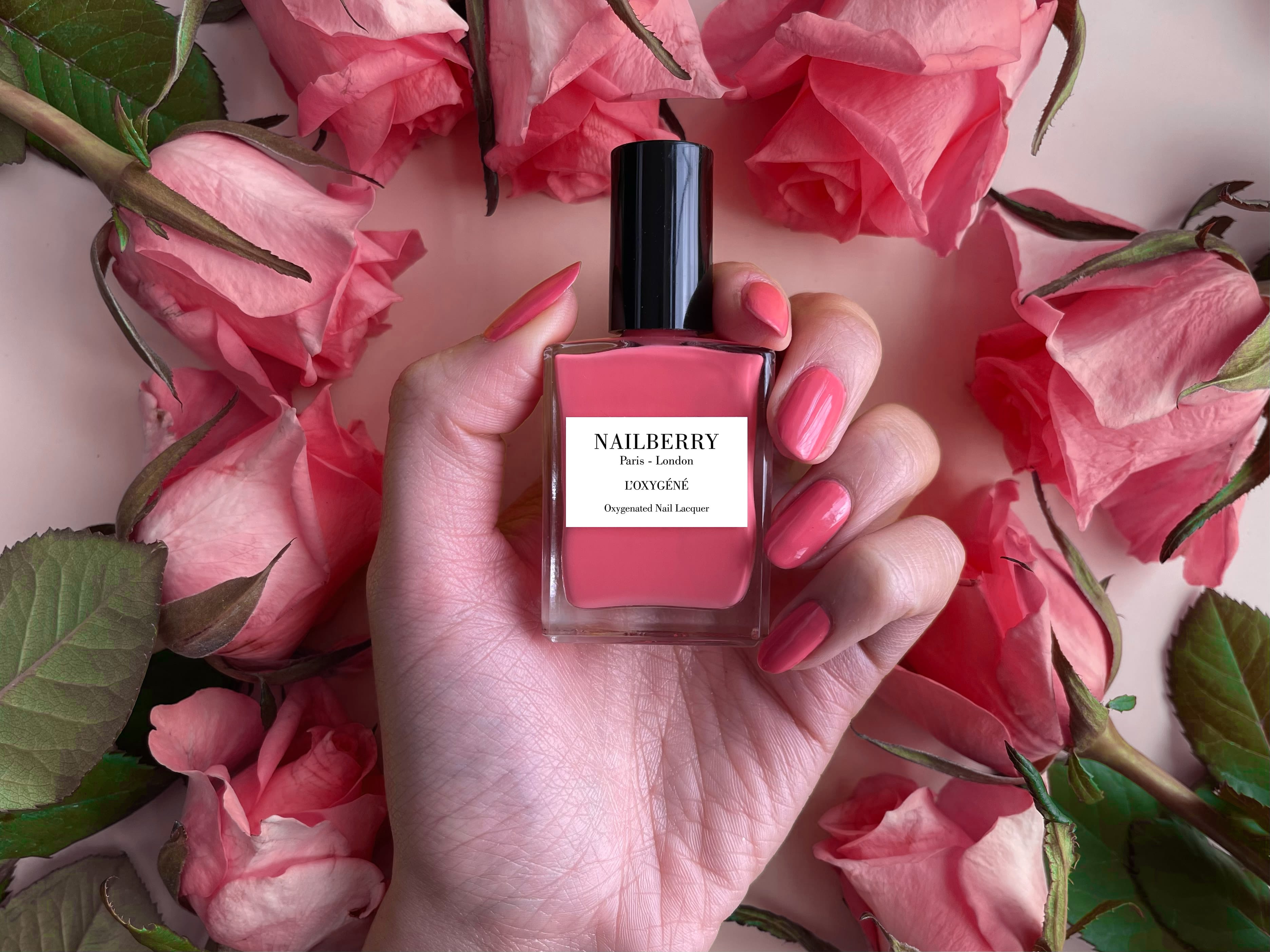 English Rose - Sígildur kórallitur Nýjasti liturinn frá Nailberry er sígildur kórallitur sem er samsettur úr björtum og sólríkum litum. Það er fullkomið jafnvægi á milli frísklegs bleiks litar og ávaxtaríks ferskjulitaðs undirtóns. English Rose er glæsilegur og líflegur litur, sérstaklega flottur á stuttar neglur. Litur sem passar alltaf og allsstaðar og lífgar upp á litlausann hversdaginn.