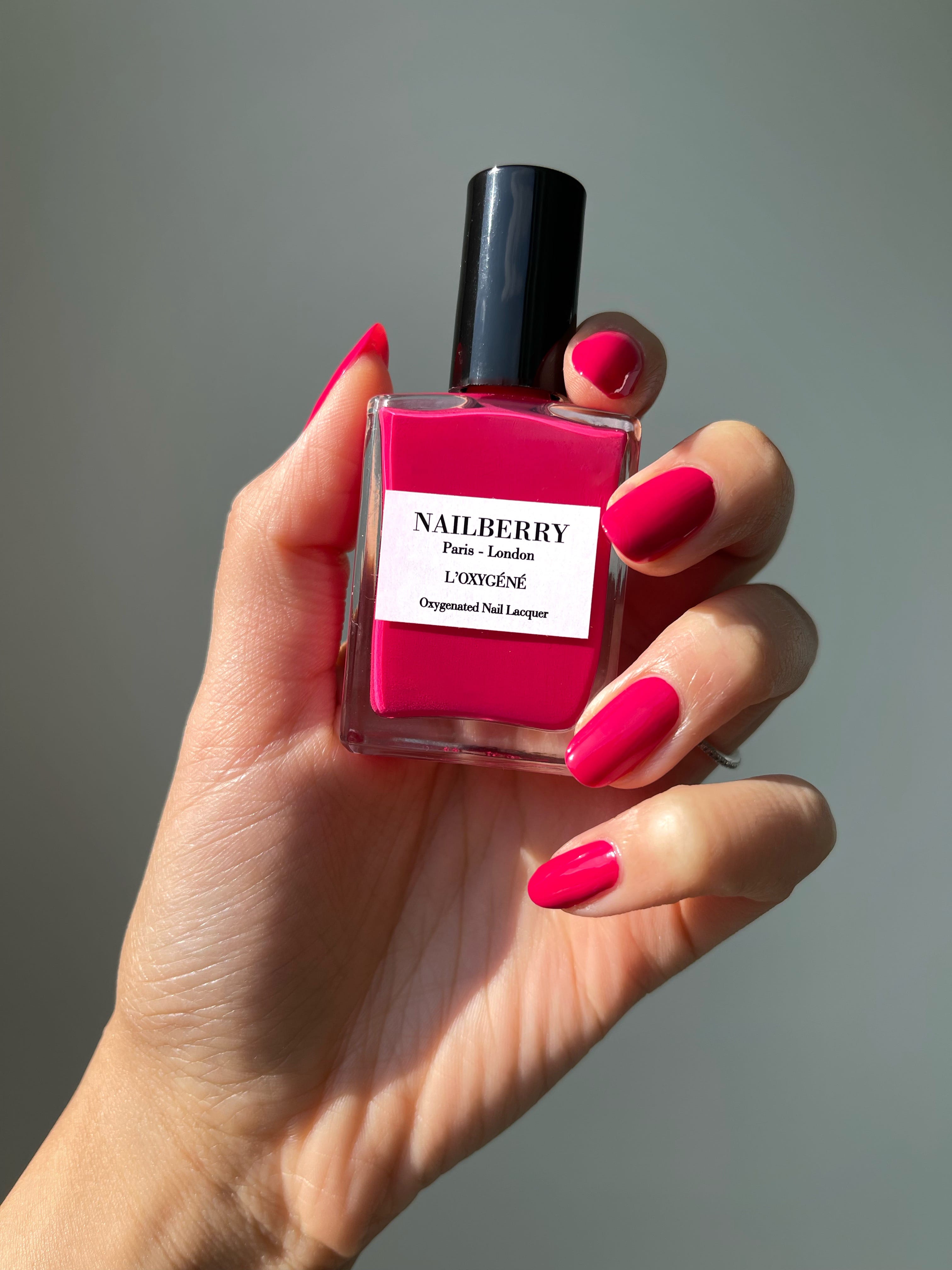 Nailberry naglalökkin eru eiturefnalaus, vegan, næra, anda og hleypa í gegn raka og súrefni. Þau hafa hlotið hina kærkomnu vottun PETA “cruelty free”. L’Oxygéné línan frá Nailberry, eru sannkölluð lúxus naglalökk. Þau hleypa í gegn raka og súrefni. Eru eiturefnalaus, VEGAN, næra, anda, endast og eru framúrskarandi smart. Fagfólkið keppist um á dásama Nailberry L’Oxygéné. Þau hafa hlotið hina kærkomnu vottun PETA “cruelty free”. L’Oxygéné eru án 12 skaðlegustu efnanna sem almennt er að finna í naglalökkum. Þau eru: Formaldehýð Túlín Kemísk kamfóra DPB (skaðleg þalöt) Formaldehýð kvoðu (resin), xylene, ethyl tosylamide, triphenyl phosphate, alkóhóls, parabena, dýraafurða & glútens (sem er ekki sjálfgefið). Nailberry L’Oxyéne henta því ekki bara flestum heldur öllum. Þar með talið óléttum konum, börnum og líka þorra þeirra sem þjást af allskyns ofnæmum. Þau sameina í senn fegurð og hreinleika og það ekkert gefið eftir þegar kemur að heilsusamlegum snyrtivörum. Neglurnar koma vel nærðar undan Nailberry L’Oxygén.