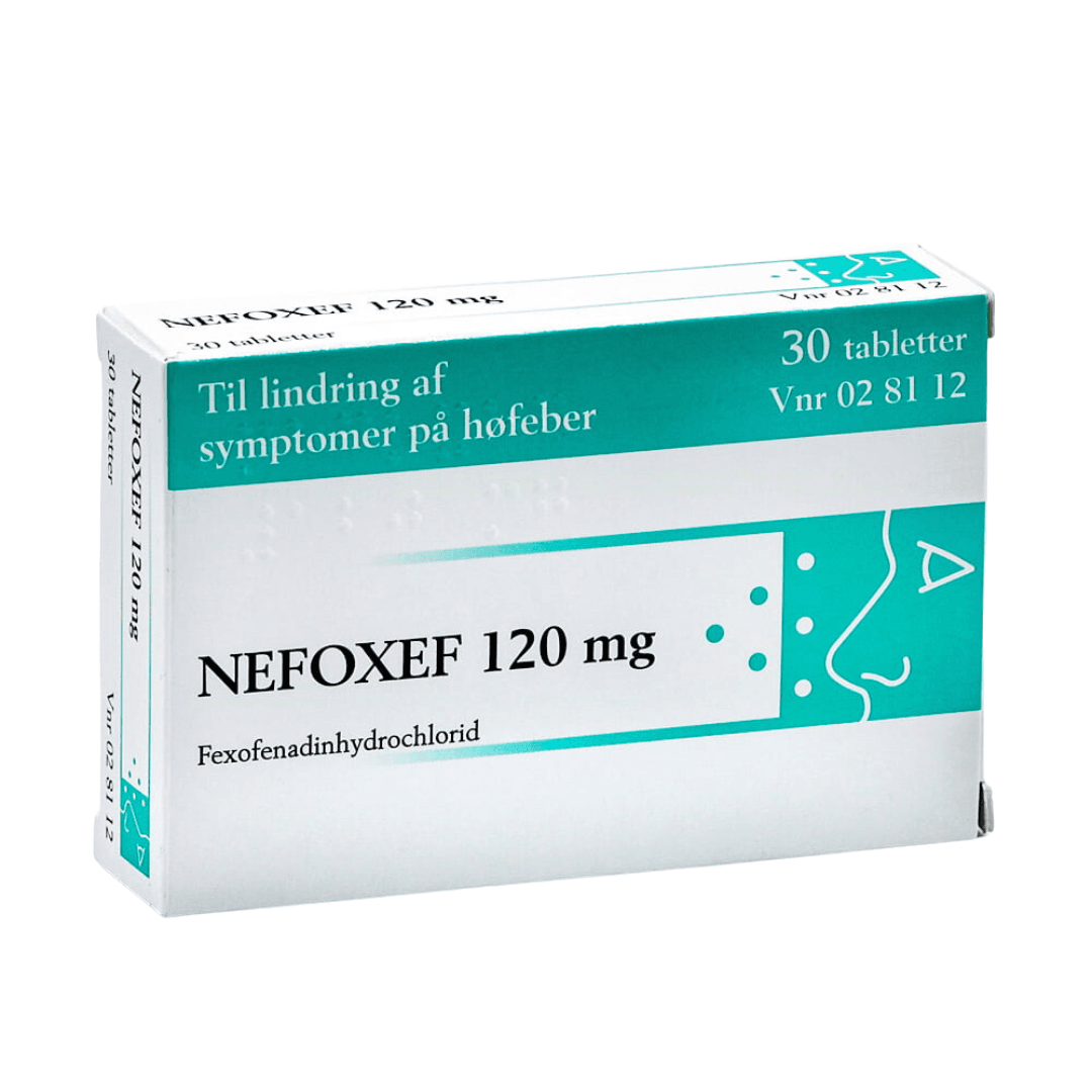 Fexofenadine hydrochloride. Each Nefoxef 120 mg film-coated tablet contains 120 mg of fexofenadine hydrochloride, which is equivalent to 112 mg of fexofenadine.