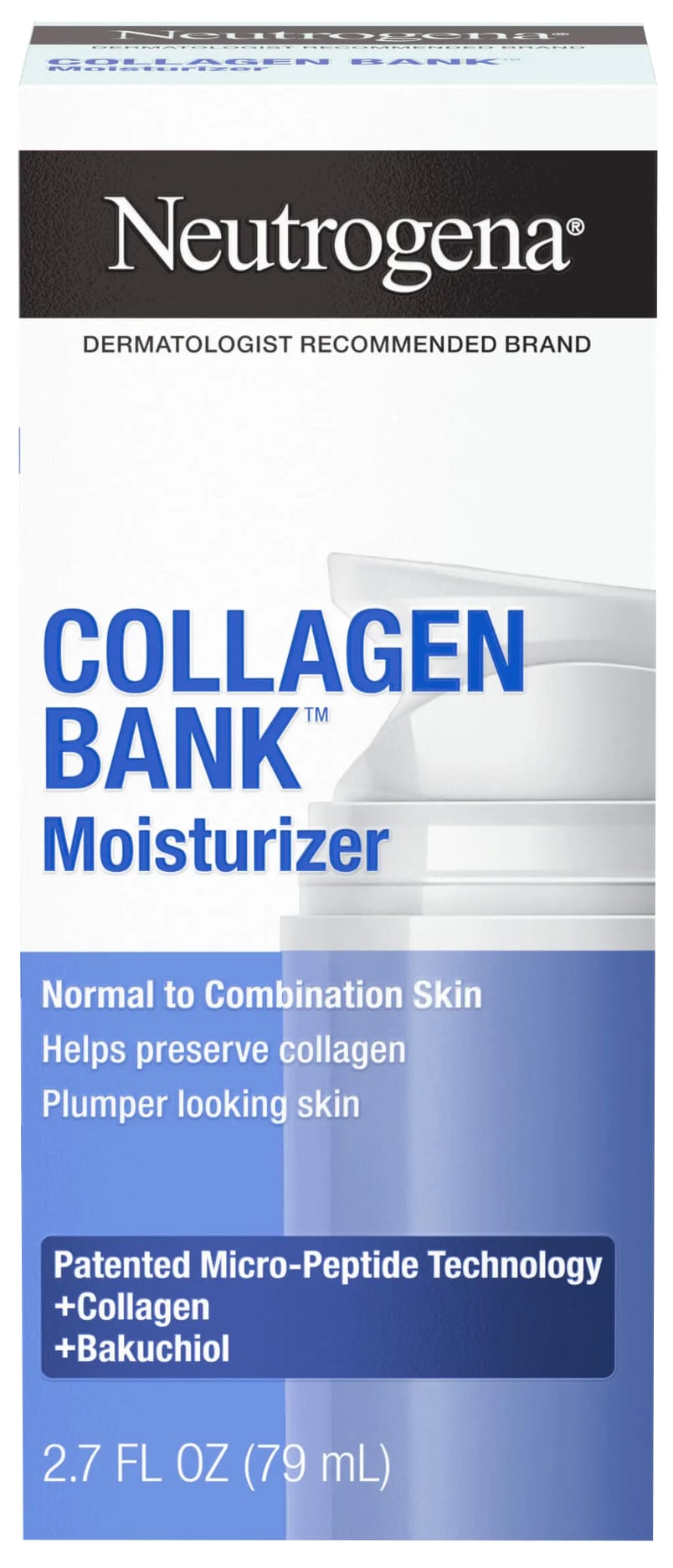 Neutrogena CollagenBank Moisturizer er létt rakakrem sem varðveitir kollagen, vinnur gegn fyrstu öldrunarmerkjum og gefur húðinni raka, sléttari áferð og stinnari ásýnd.
