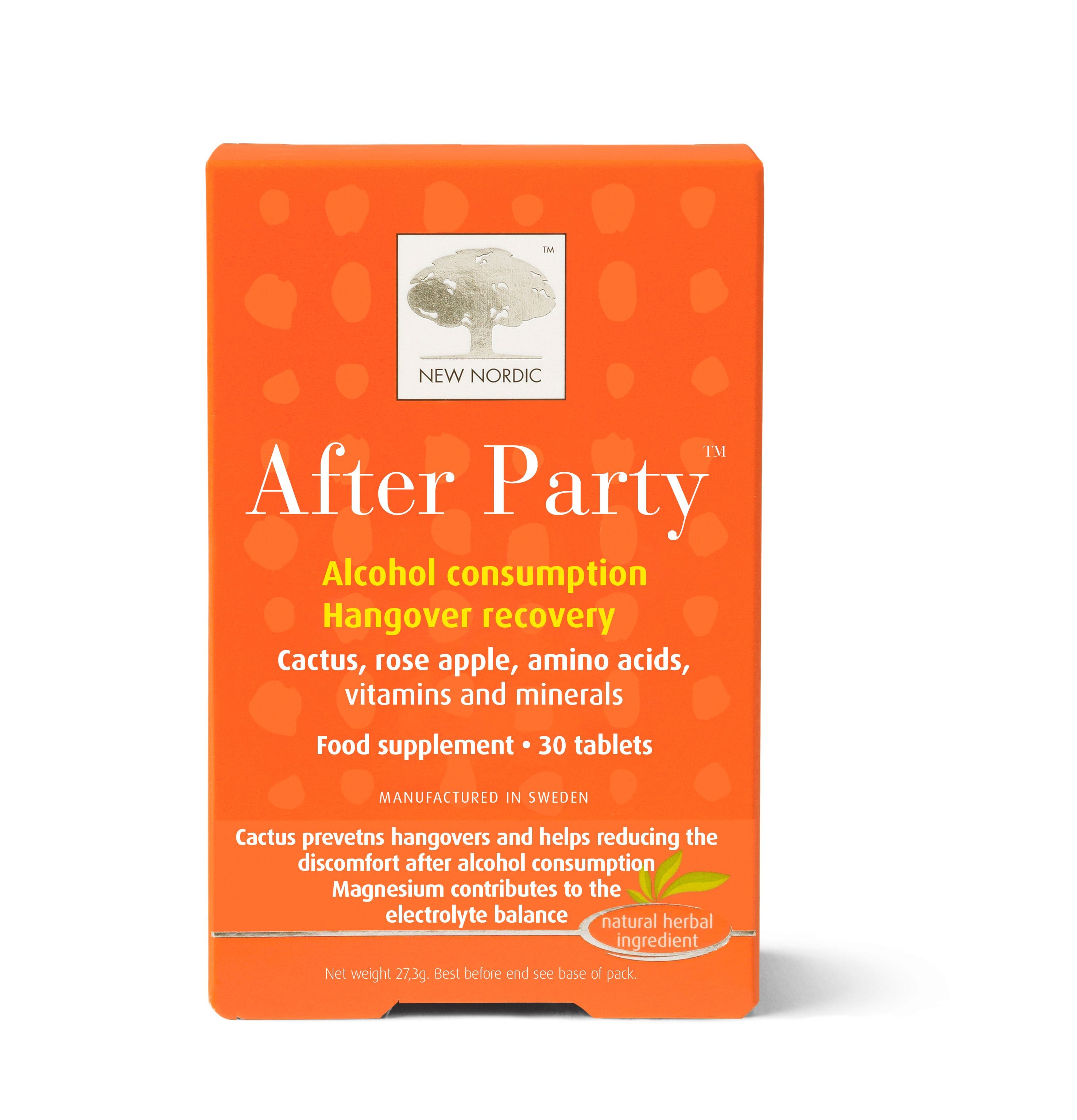 After Party er bætiefni gegn þynnku, það inniheldur náttúrlegan kaktus og rósepla extract ásamt nauðsynlegum næringar- og steinefnum. Blanda þessara efna hjálpar til við að vinna á móti vökvatapinu sem á sér stað í líkamanum við áfengisneyslu og draga úr þreytu og vanlíðan daginn eftir.