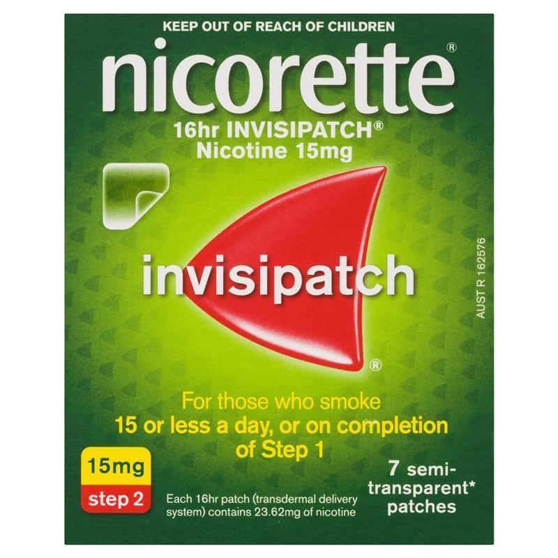 Nicorette inniheldur nikótín. Plásturinn er settur á þurrt, hárlaust svæði, eins og mjöðm og hann fjarlægður eftir 16 klst. Skipt er um svæði á líkamanum eftir dögum. Pakkinn inniheldur 7 stk af 15 mg plástrum