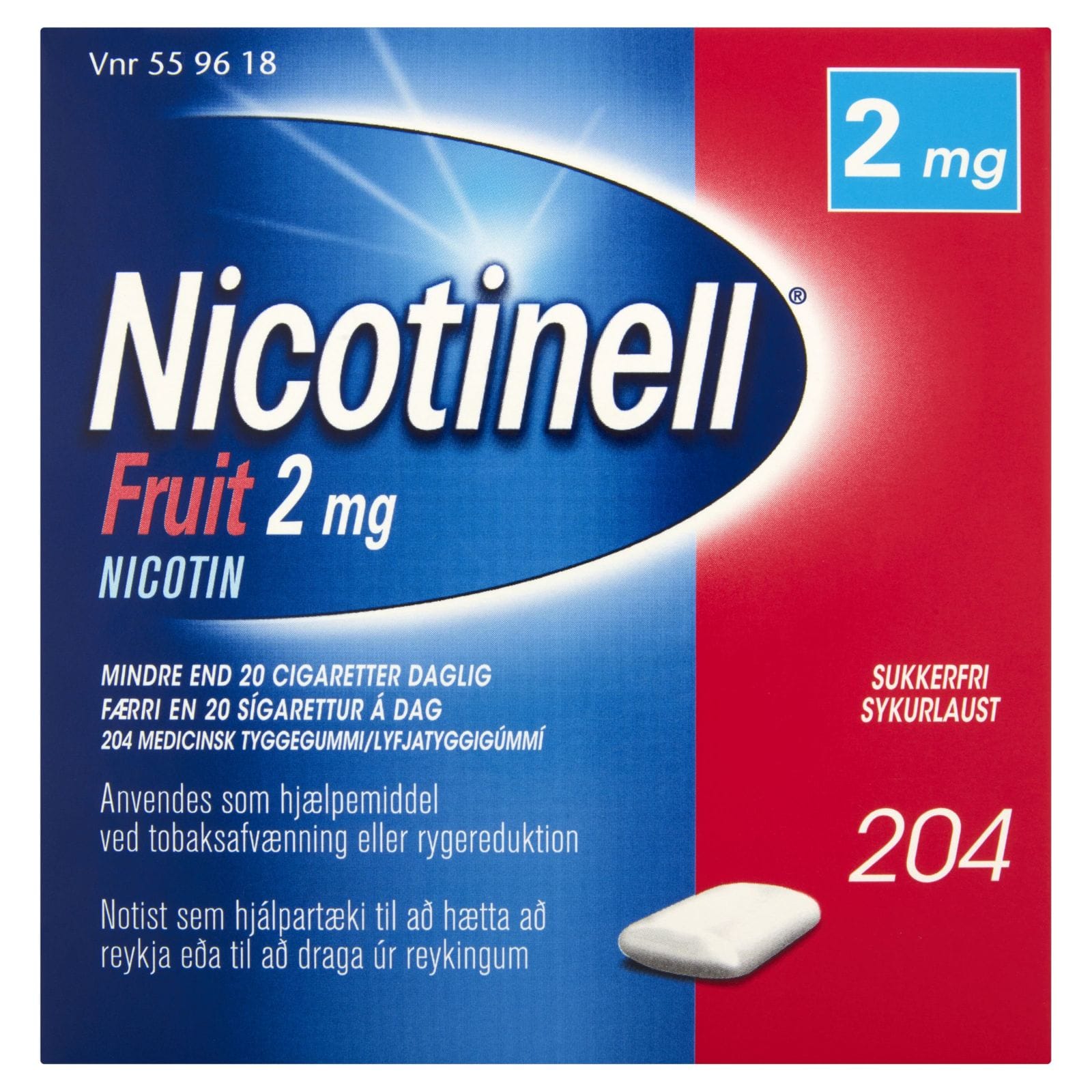 Nicotinell Fruit tyggigúmmí 2 mg 204 stk