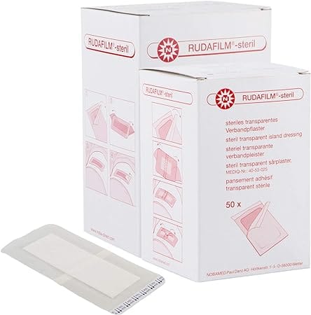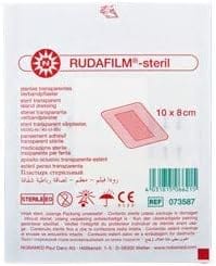 Rudafilm er sterill filmuplástur með húðaðri grisju en umbúðir festast þá síður í sárinu.