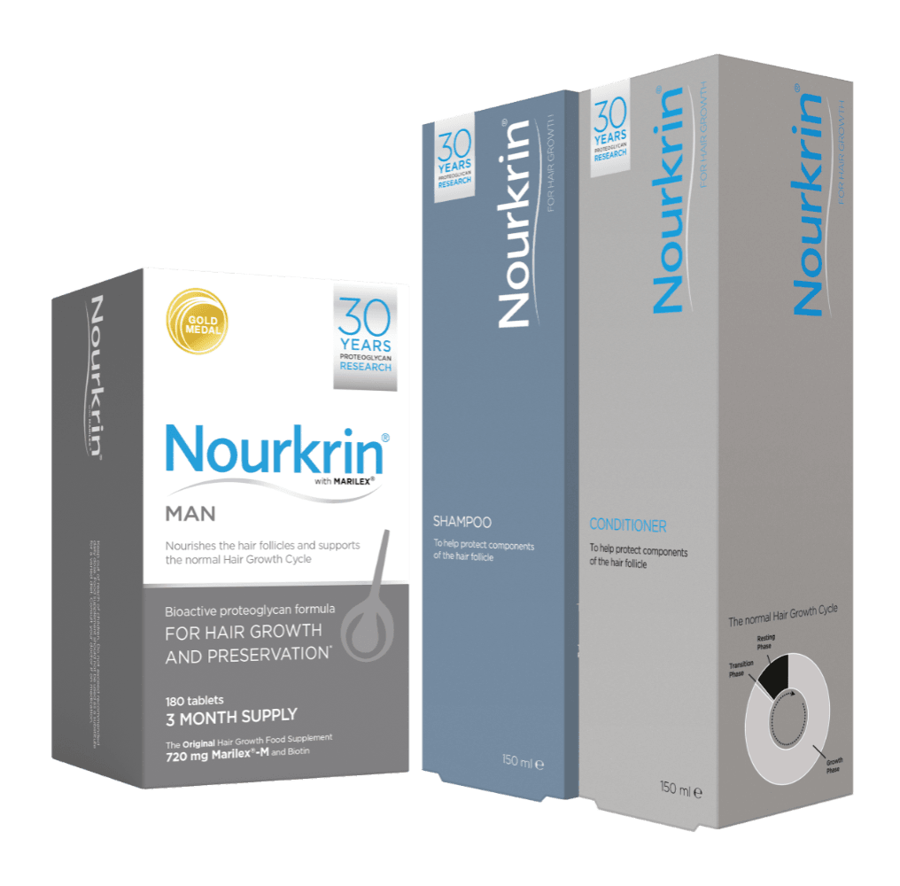 3ja mánaða skammtur af Nourkrin Man og Sjampó og hárnæring fylgir frítt með.