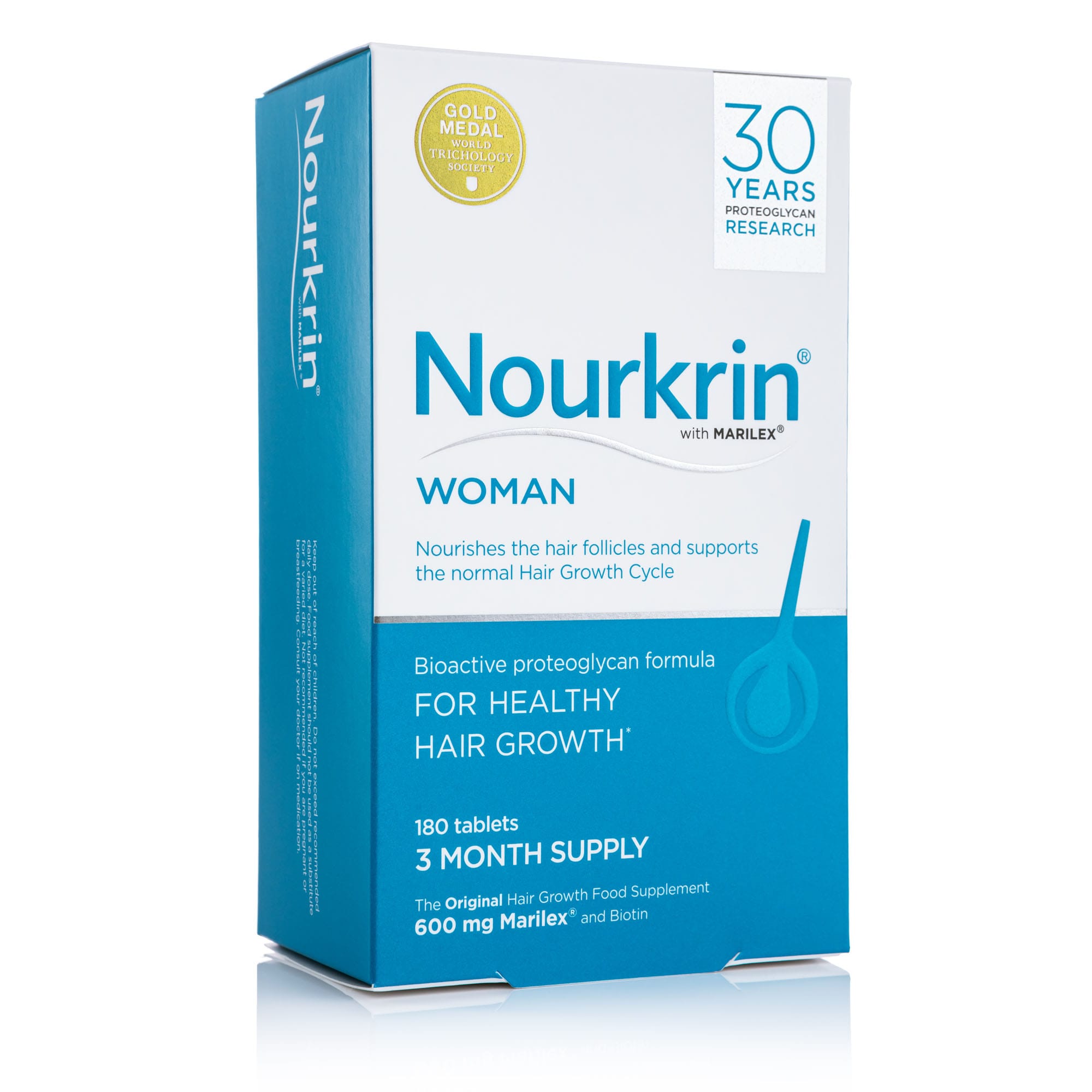Noukrin Woman er einstakt hágæða hárbætiefni 100% lyfjalaust sem byggir á vísindalegum rannsóknum. Það inniheldur hið byltingarkennda Marilex bætiefni sem er unnið úr þykkni úr fiskbeinum. Nourkrin nærir hárið og viðheldur eðlilegum hárvaxtar hring. Ráðlagður meðferðartími er 6 mánuðir