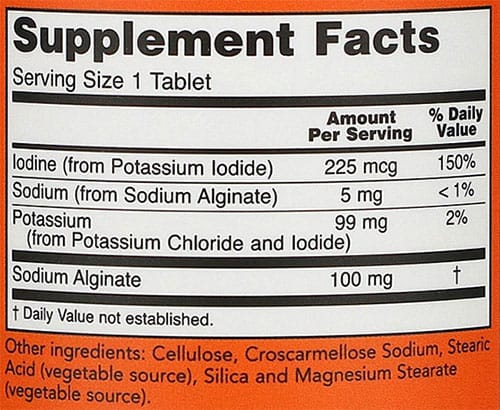 Iodine, Sodium, Potassium, Sodium, Cellulose, Croscarmellose Sodium, Stearic Acid (vegetable source), Silica and Magnesium Stearate (vegetable source).
