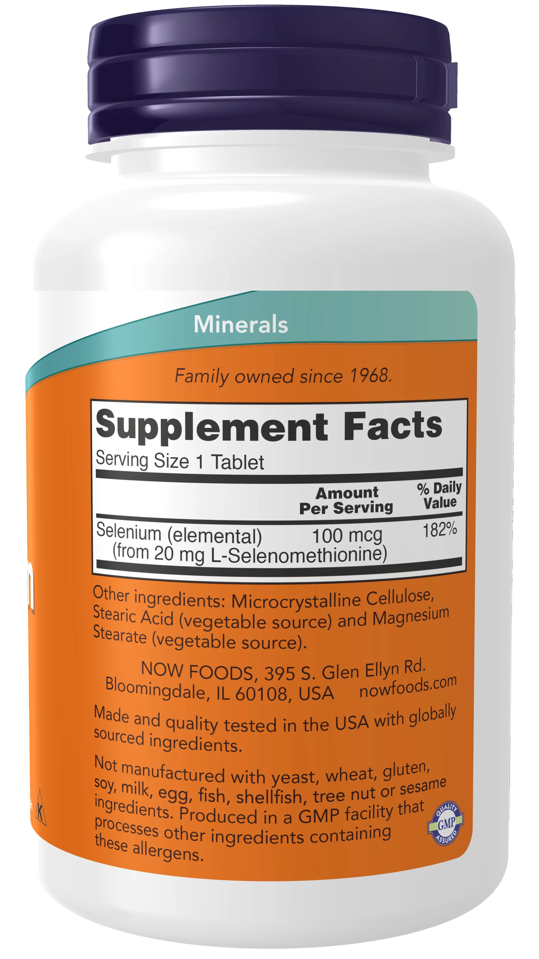 Selenium, Microcrystalline Cellulose, Stearic Acid (vegetable source) and Magnesium Stearate (vegetable source).