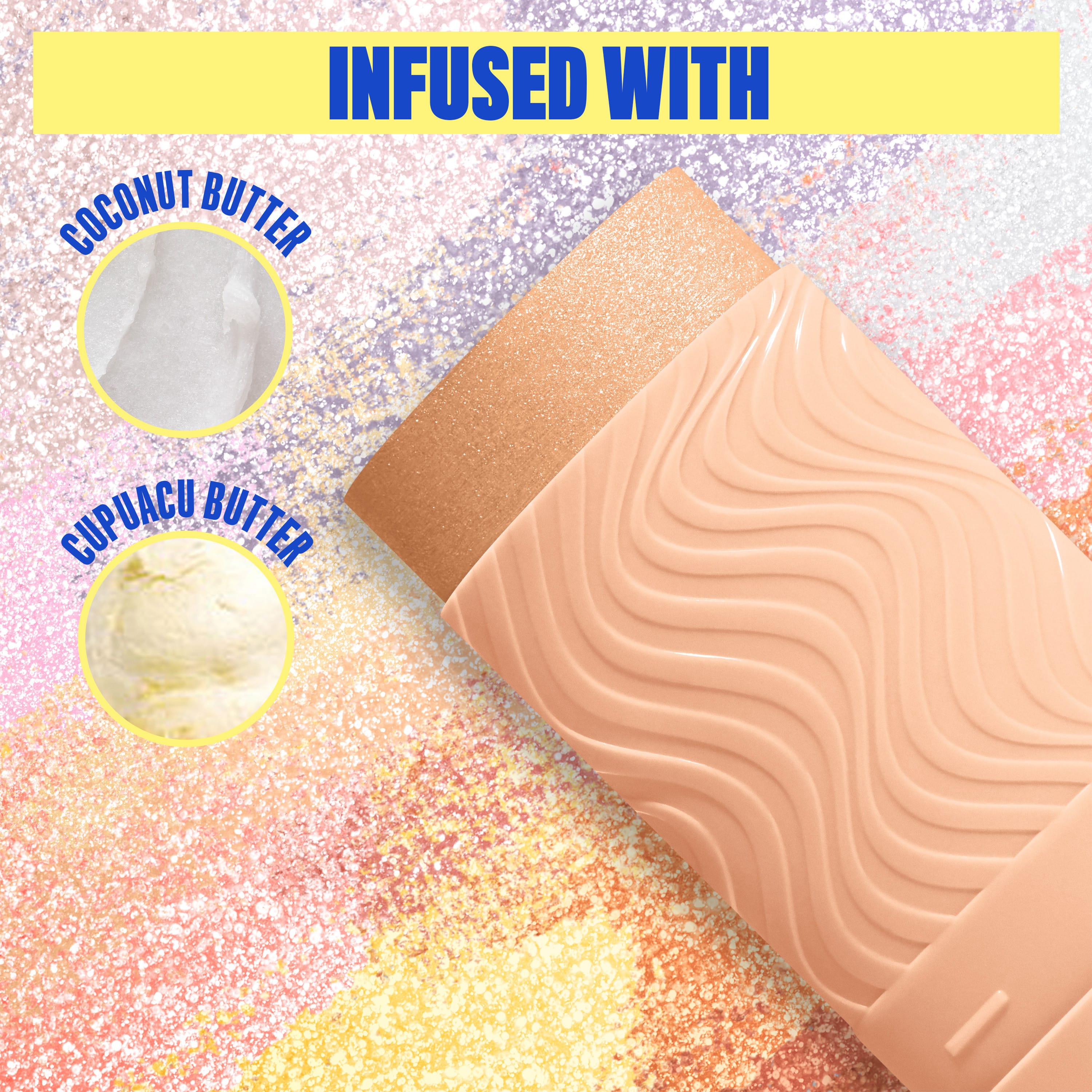 Náðu fram fullkomnum ljóma án þess að nota mikið glimmer, stiftin eru tilvalin til að lýsa upp hápunkta andlitsins eða byggja upp ljóma yfir stærri svæði eins og viðbein, handleggi og fætur. Fáðu ""butta soft"" áferð, ""butta melt"" útlit og ""butta glaze"" ljóma.