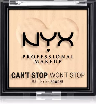 Can't Stop Won't Stop Mattifying Powder er létt púður sem gefur húðinni slétta og matta áferð allan daginn án þess að húðin virðist þurr. Púðrið blandast auðveldlega og húðin verður slétt en púðrið sest ekki í fínar línur, einnig verður húðin mött og lámarkar það glans yfir allan daginn. Fáanlegt í 12 litum.