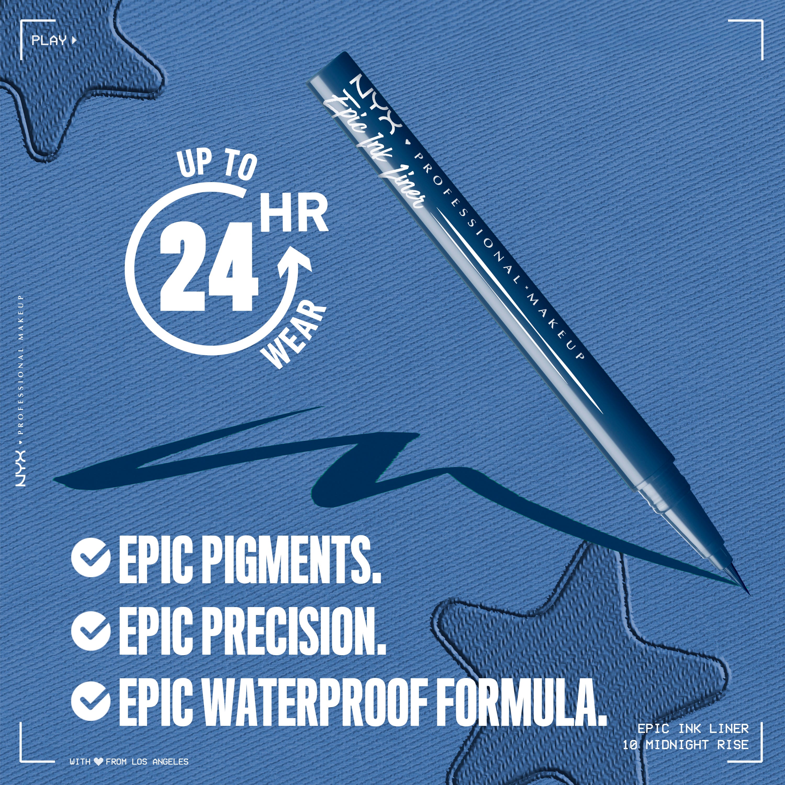 Blautur eyeliner með mjóum, sveigjanlegum bursta frá NYX Professional Makeup fyrir ofurnákvæman, vatnsheldan eyeliner.