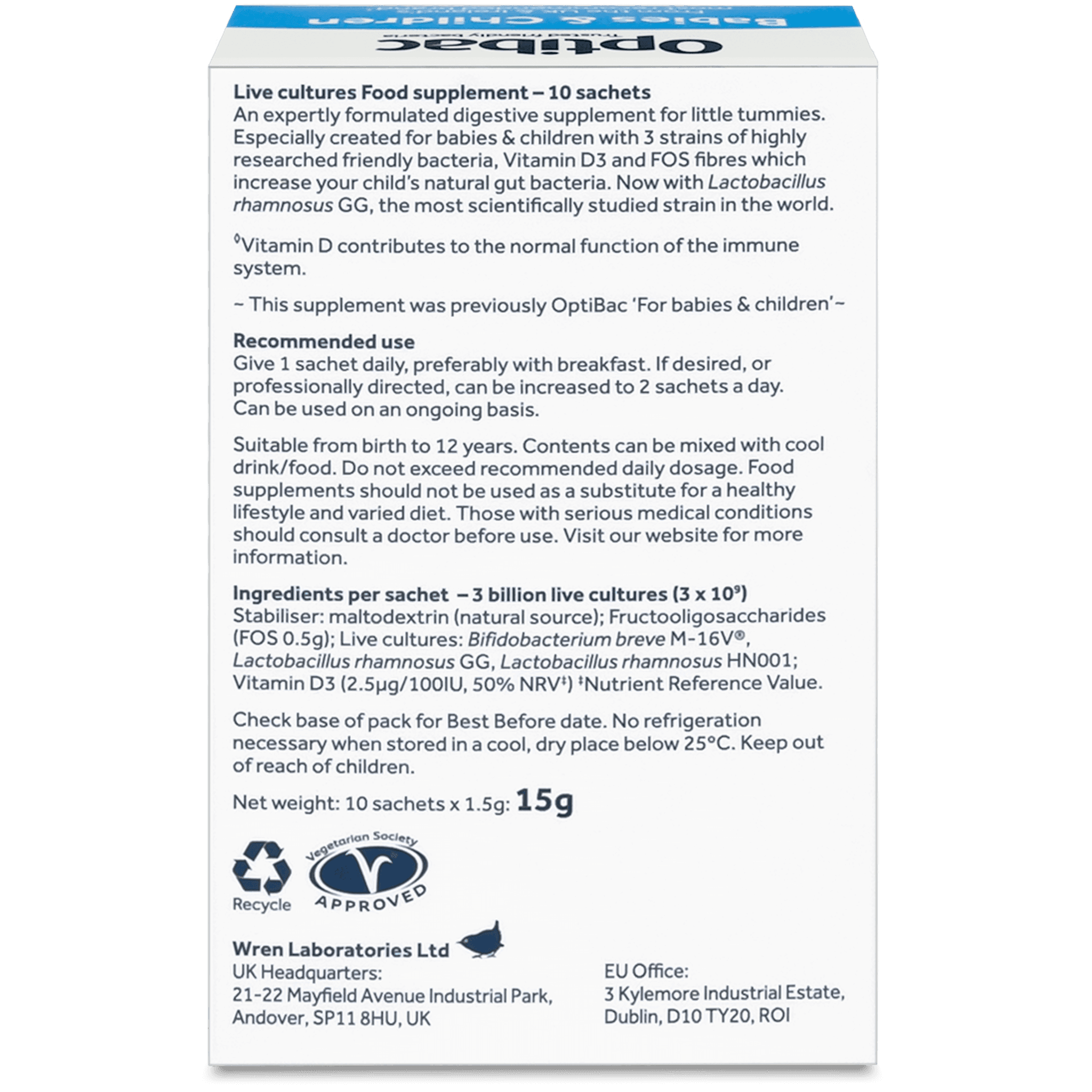 **Fyrirburar, börn með einhverja sjúkdóma eða þau sem taka inn lyf ættu ekki að taka gerlana nema að höfðu samráði við lækni. GMO free.