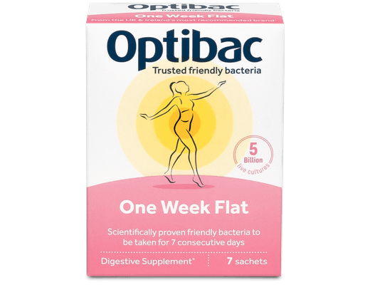 One week flat inniheldur 4 vel rannsakaða gerla sem auka framleiðslu á meltingarensímum sem hjálpa til við niðurbrot á flóknum sameindum (stundum kallað mólikúl) s.s., úr laktósa og sterkju, auk þess að vinna á óæskilegum áhrifum gers. Inniheldur einnig mikið magn (0,3g) af FOS Fructooligosaccharides (stundum kallað prebiotics). Virkar vel fyrir þá sem eru með óeðlilega mikinn vindgang sem getur m.a., stafað af slöppum þörmum, vindi sem er fastur hér og þar í þörmunum, fæðuóþoli eða viðkvæmni fyrir ýmsum fæðutegundum. One Week Flat hefur auk þess reyns vel fyrir þær konur sem fá þaninn maga í tengslum við blæðingar. Auk þessa þá eykur One Week Flat almennt hlutfall góðra gerla í meltingunni. Hægt að taka sem kúr í 7 daga eða lengur. Má einnig nota að staðaldri til lengri tíma. Má nota á meðgöngu. GMO free.