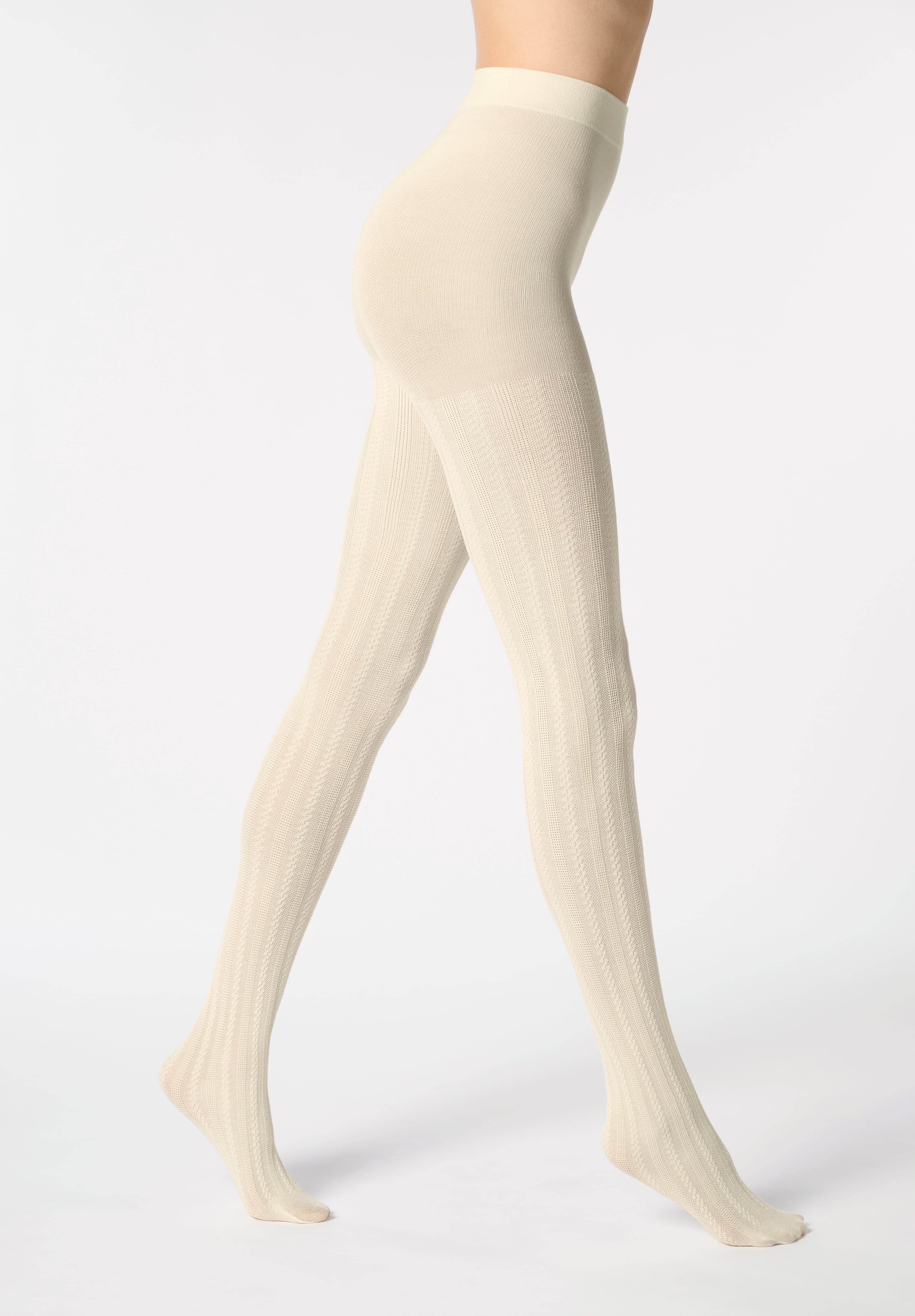 Mjúkar bómullarsokkabuxur með fíngerðu upphleyptu mynstri. Með skrefbót.
