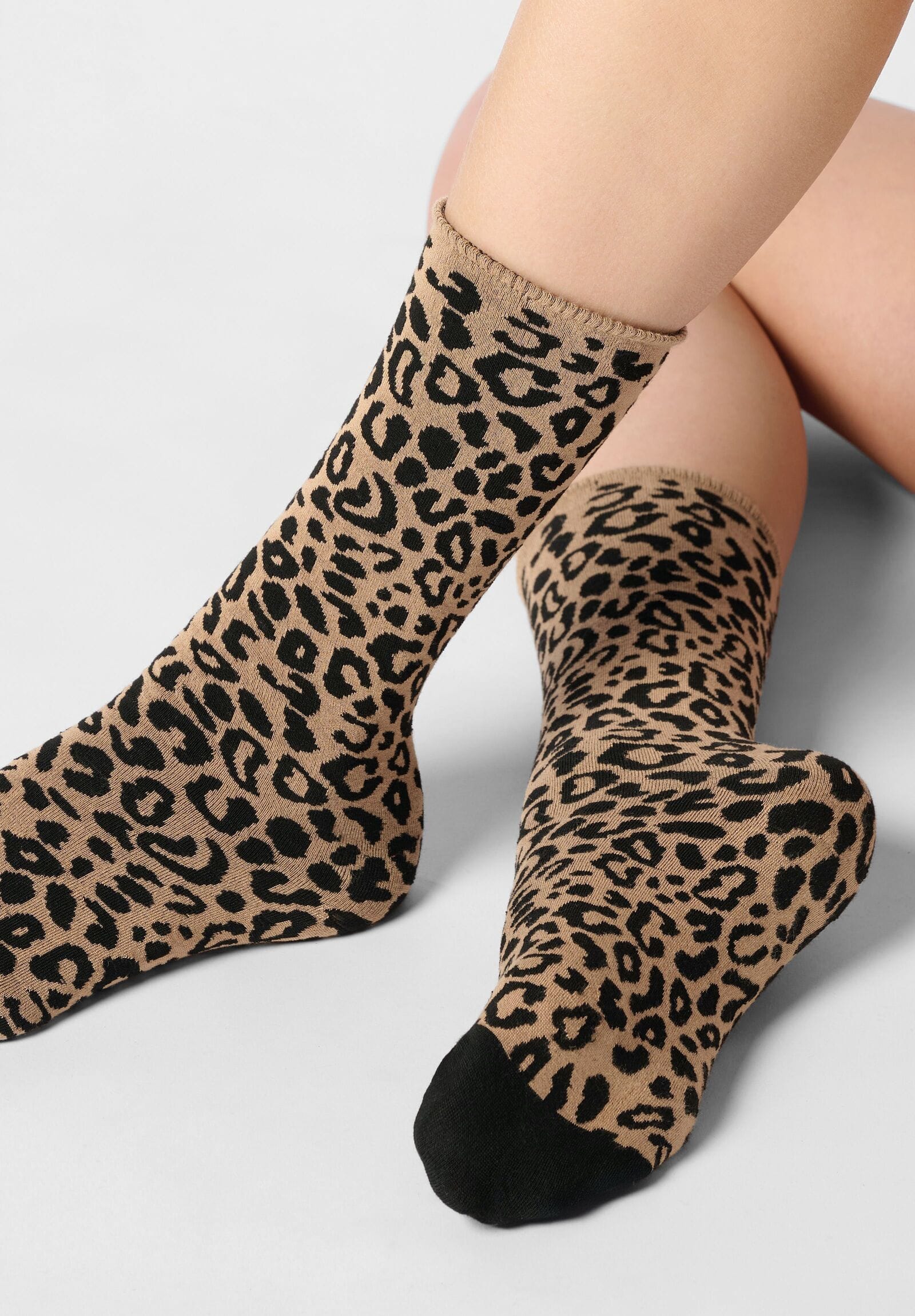 Viskóssokkar með hlébarðamynstri. Þunnt stroff.
