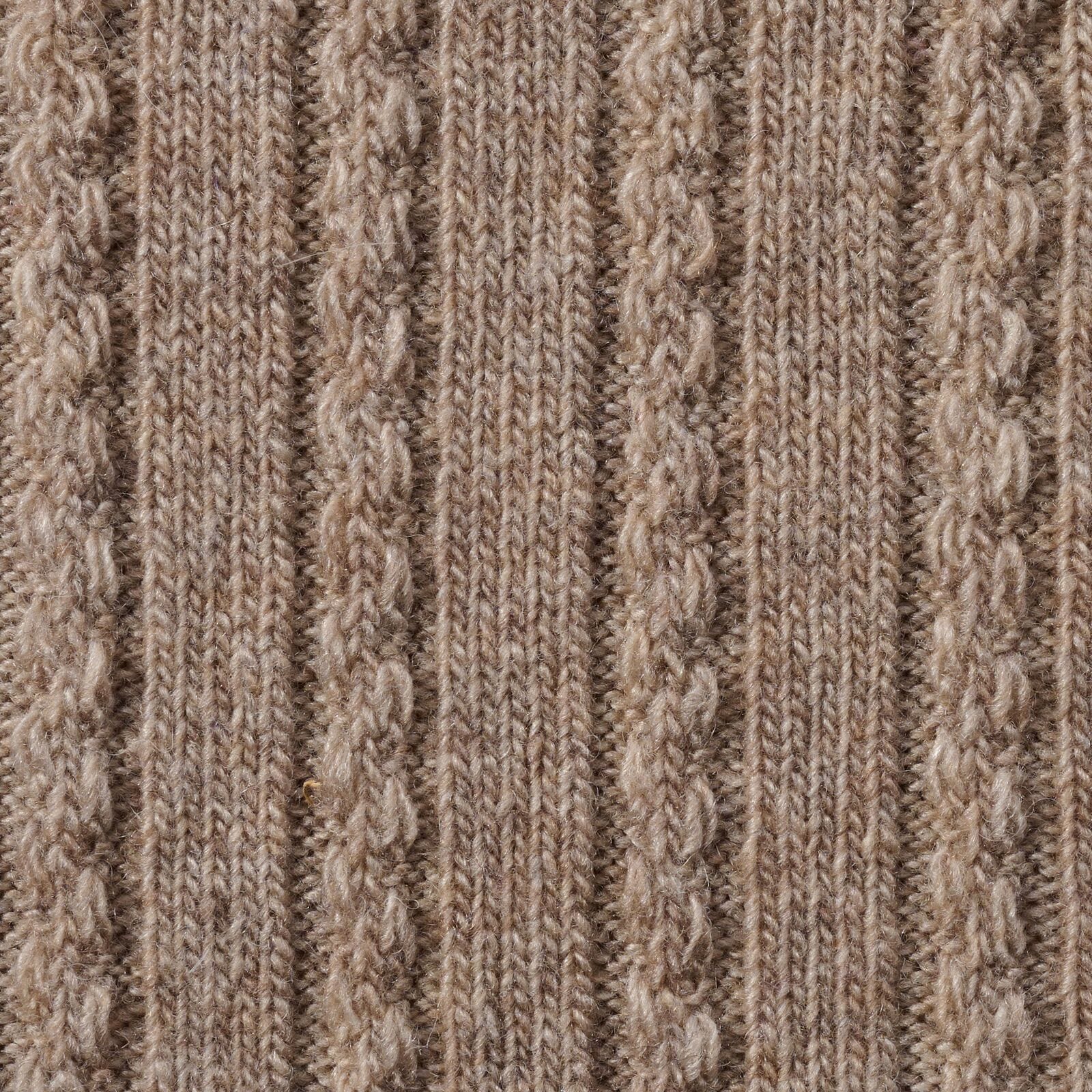 Hnésokkar með mynstri sem skiptist á rifflum og fléttum. Úr ull og kasmír, mjúkir og hlýir viðkomu. Með styrktri tá og hæl. Mjúkt og þægilegt stroff.