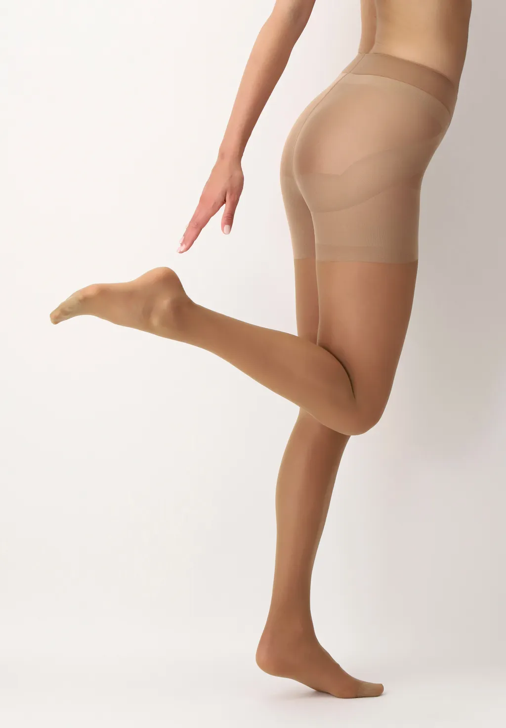 Sokkabuxur með einstaklega stífu og þéttu mótandi aðhaldi sem lyftir rassinum og veitir mikinn stuðning yfir bak, mitti og læri. Sokkabuxurnar eru ofnar þannig að þær veita mikinn stuðning yfir daginn.