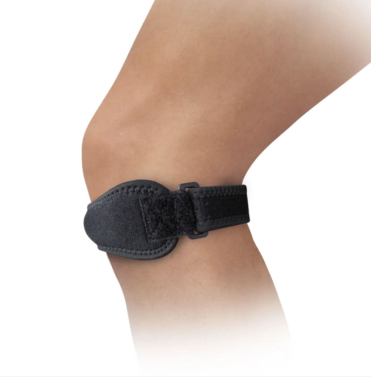 Ein stærð, passar á hægri og vinstri fót stillanlegt, Getur hjálpað til við að létta verki fyrir neðan hné, Styður við laskaða hnéskeljasin (patella tendon)