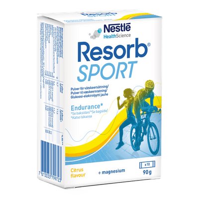 Duft frá Resorb sem gegna því hlutverki að endurheimta vökva-og saltbúskap líkamans eftir líkamlega áreynslu. Resorp kemur jafnvægi á vökva- og saltbirgðir líkamans og flýtir þannig fyrir bata. Resorp sport er hugsað fyrir íþróttafólk. Inniheldur magnesíum og flýtir fyrir endurheimt. Bragðgott sítrusbragð