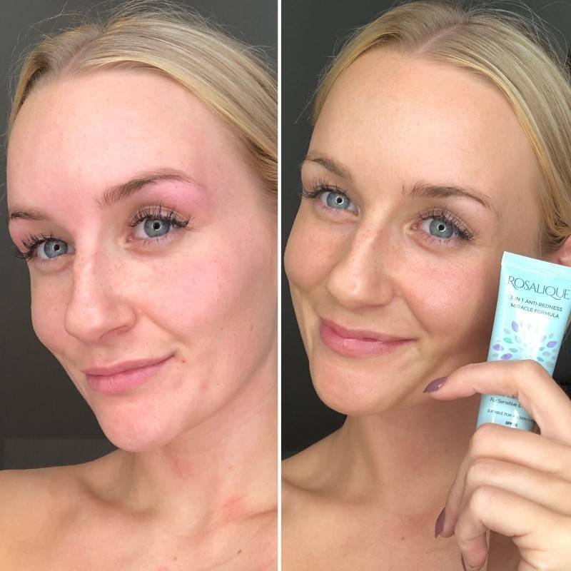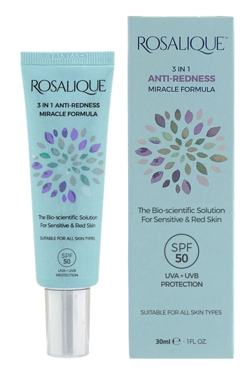 Þessi einstaka formúla er sérstaklega hönnuð til að vera hraðasta, öruggasta og árangursríkasta lausnin fyrir roða í húð. Grænar micro kúlur, innihalda „húðlit“ og þegar kremið er borið á húðina springa þær út og hylja því roðann sem var á húðinni og aðlagast þínum húðlit. Rosalique inniheldur SPF 50 sem veitir góða vörn UVA og UVB geislum sólarinnar og kemur í veg fyrir að húðin roðni aftur.