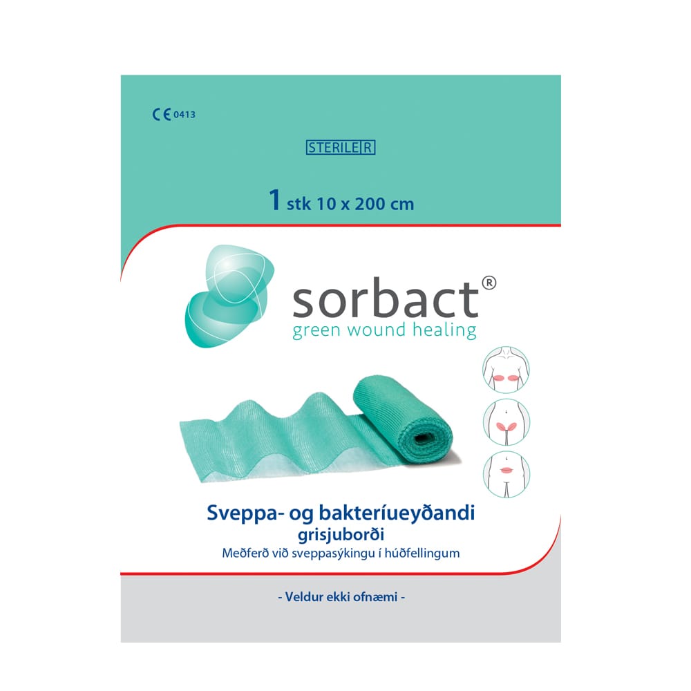 Sorbact® samanstendur af grænu Sorbact® snertilagi sem fer beint á sár, sem gerir það að verkum að sáravessar fara yfir í auka umbúðir og græna Sorbact snertilagið dregur í sig og drepur og minnkar sýkingar og sveppa hættur.
